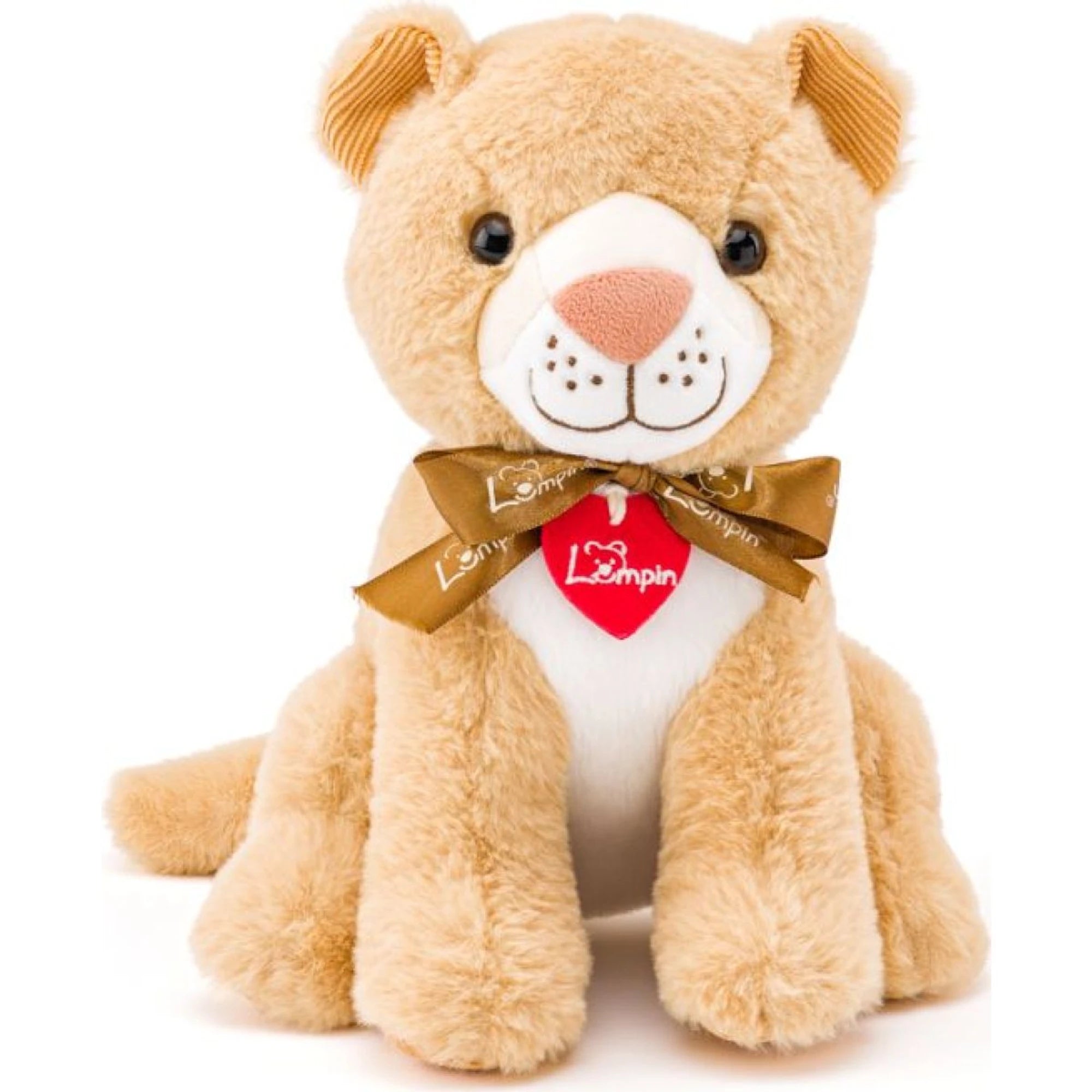 Lvíče Juma je heboučké, světlounce hnědé a pyšní se bílou náprsenkou. Pod krkem mu sluší hnědá mašle se srdíčkem – i malý lev umí nosit styl.