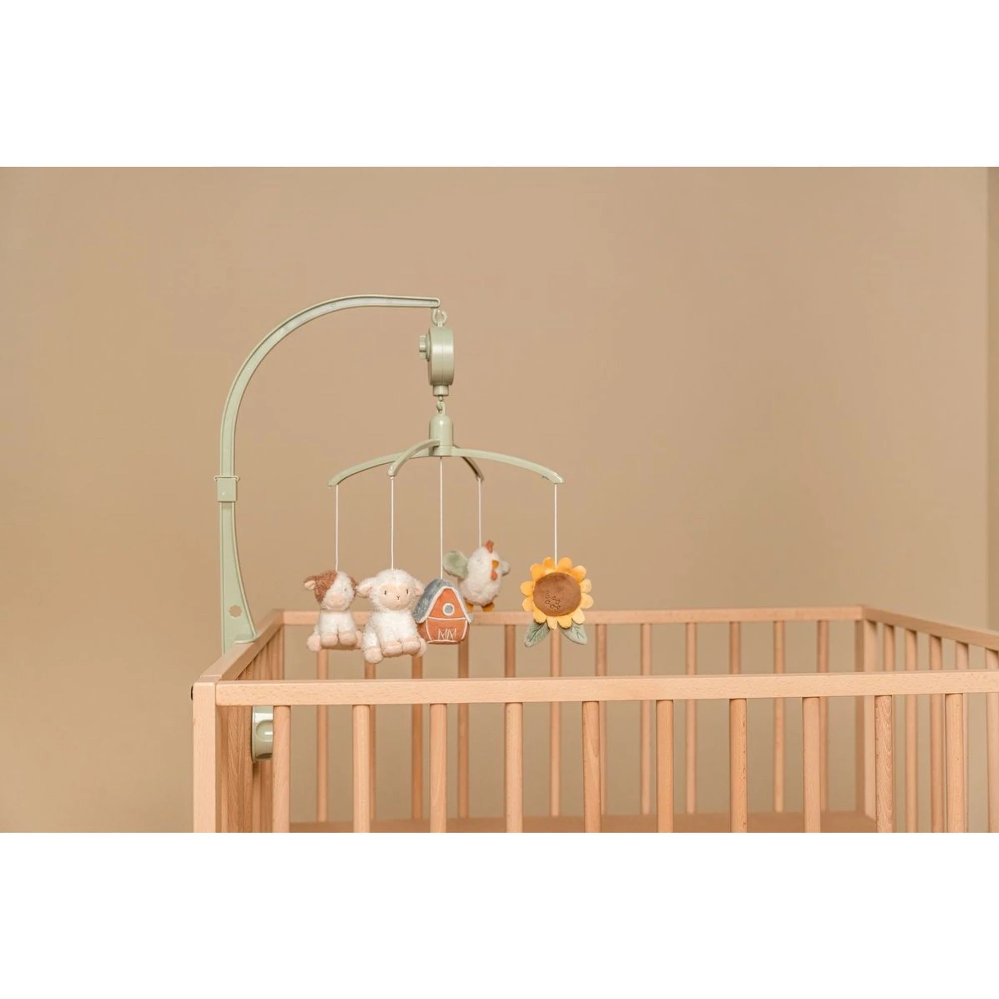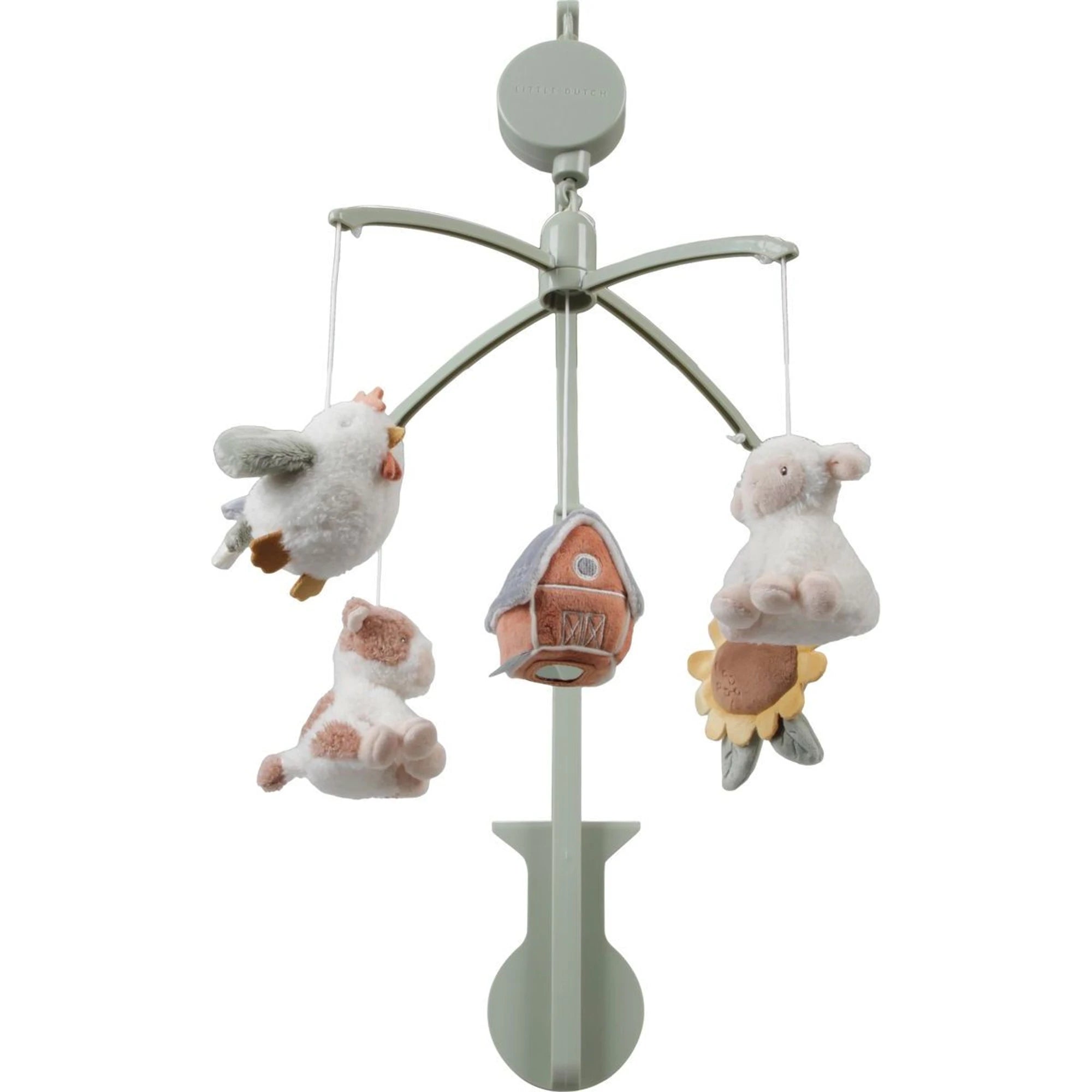 Je to parťák na zklidnění. Holčičky a kluci mohou pozorovat pomalu rotující zavěšená zvířátka a po jejich odejmutí je prozkoumávat v ručičkách. Také poslouchat hrající melodii ukolébavky, u které se jim může dobře usínat. Kolotoč je z designové kolekce Little Dutch Farma.