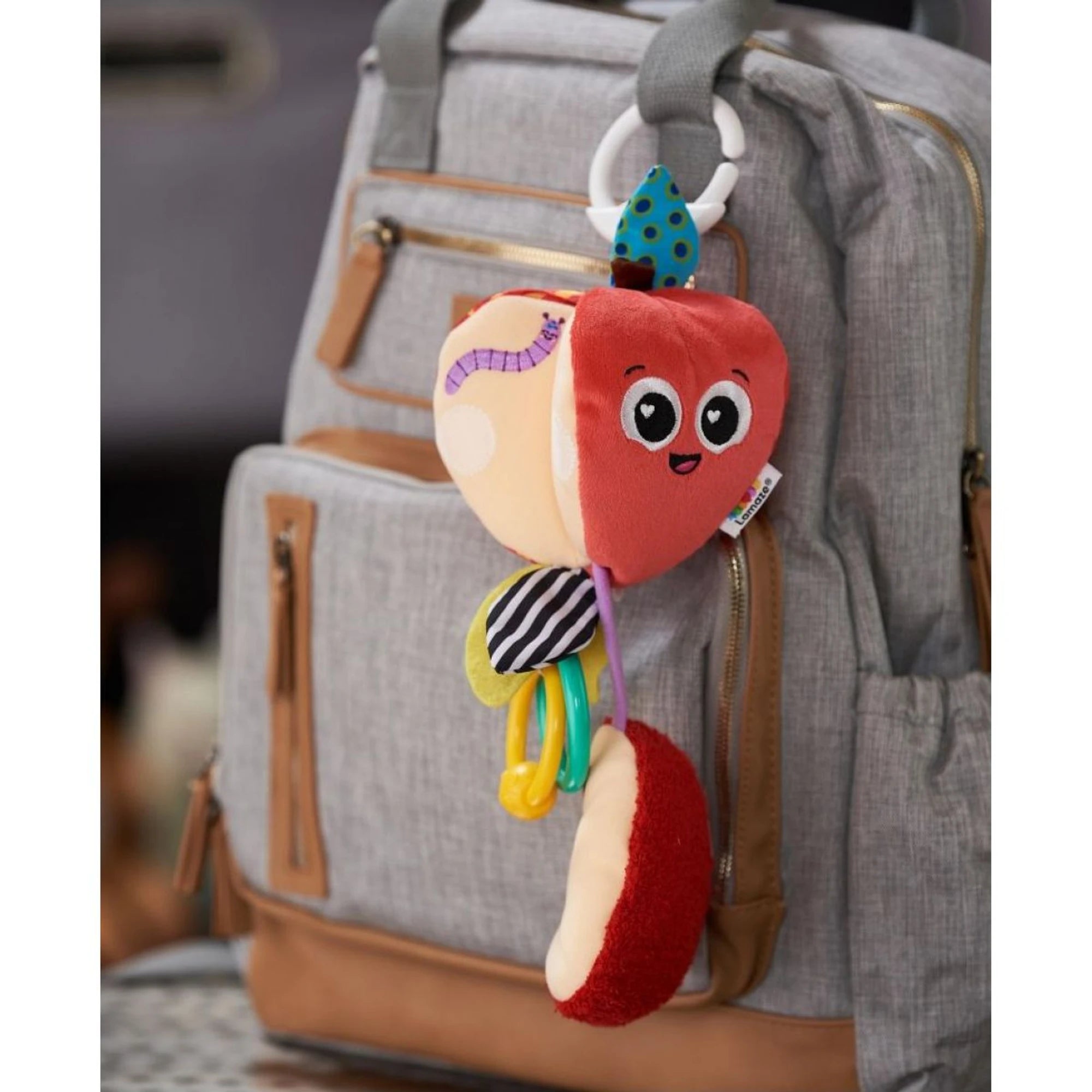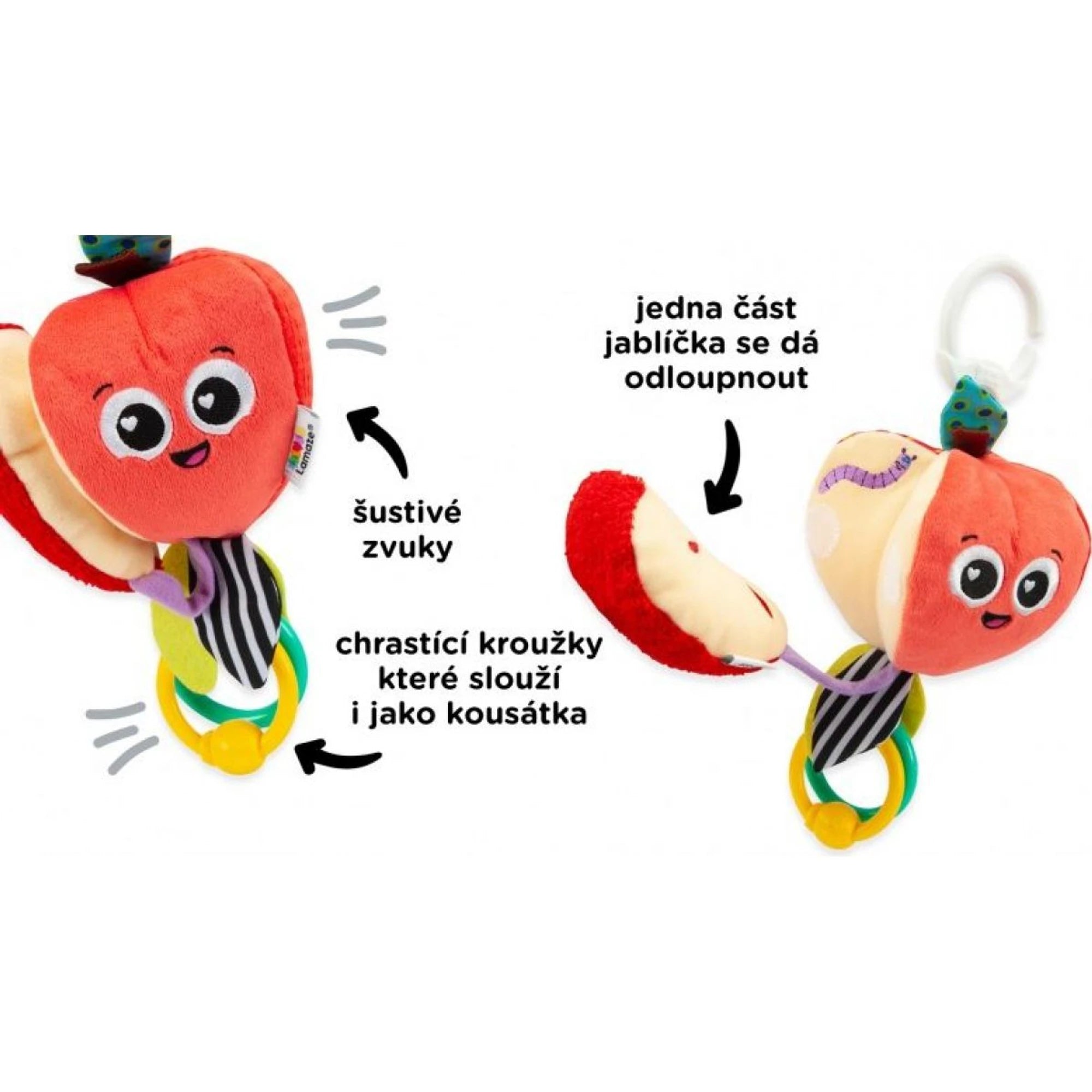 Červené jablíčko, které se díky kroužku nahoře cvakne kamkoli, je parťák pro miminka hned od narození.