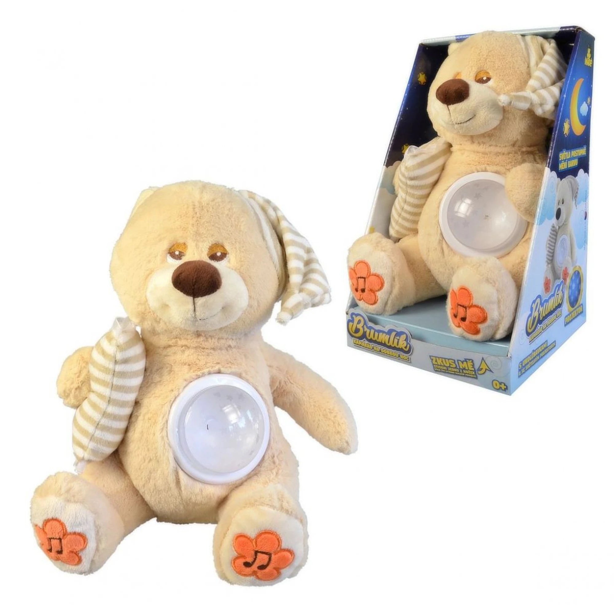 Stačí zmáčknout medvídkovi bříško a rozjede, co umí – melodie, zvuky i světýlka. Pro děti se raz dva stane mazlivým parťákem na noc.