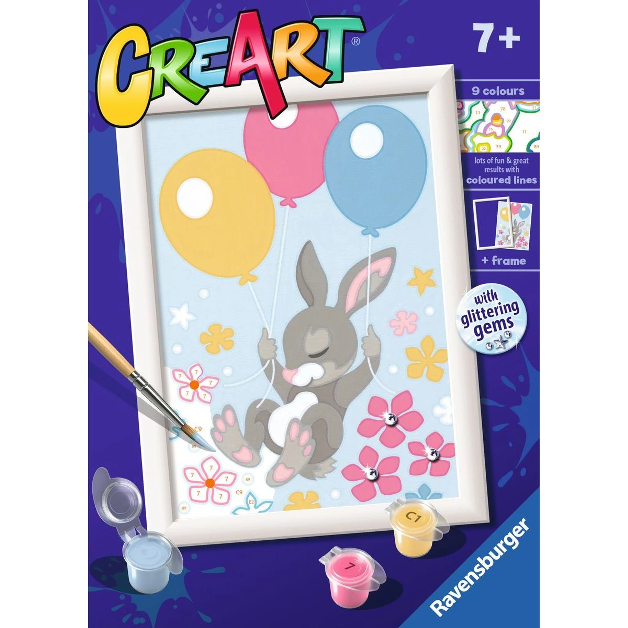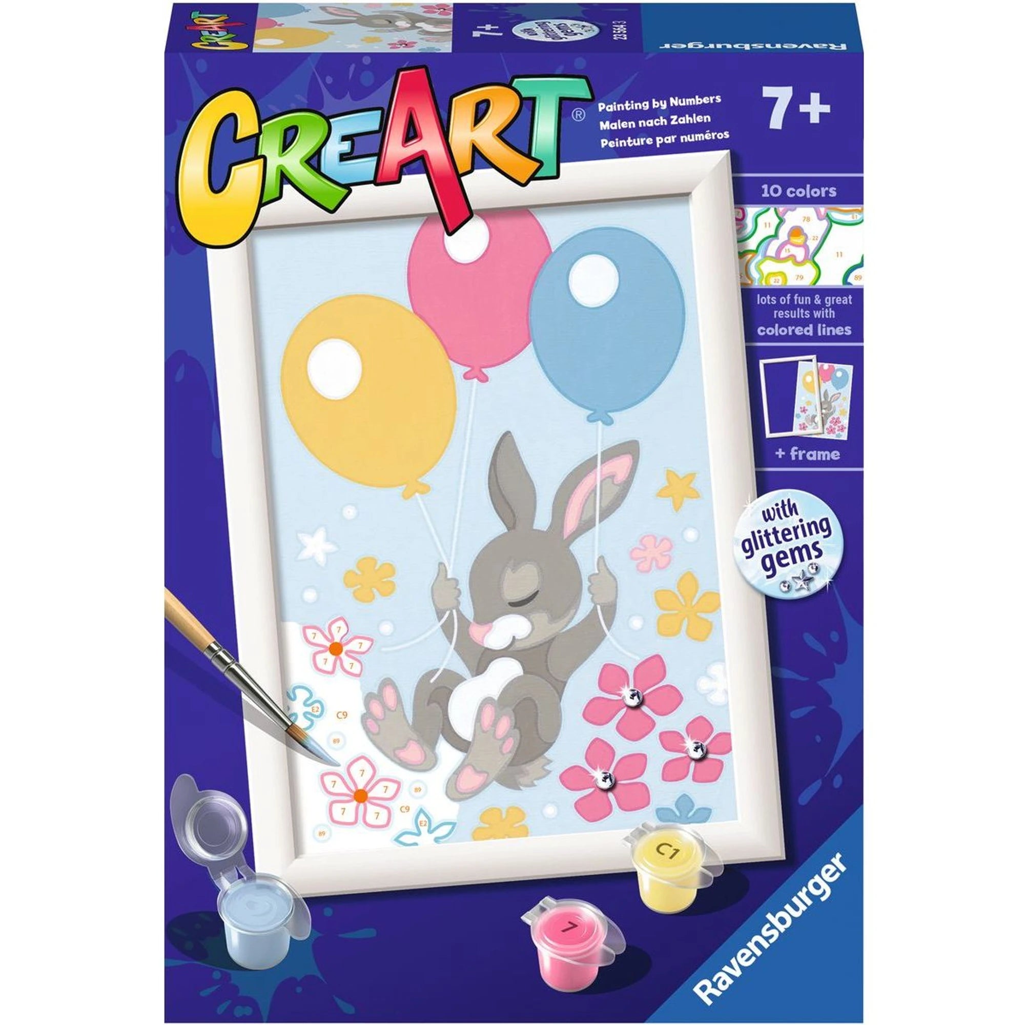 Létající zajíček je hvězdou kreativního setu, který děti pozve k malování podle čísel. Ploška po plošce, číslo po čísle – každé číslo má svou barvu a před očima vyroste barevný obraz rychleji, než zmizí sušenka ze stolu.
