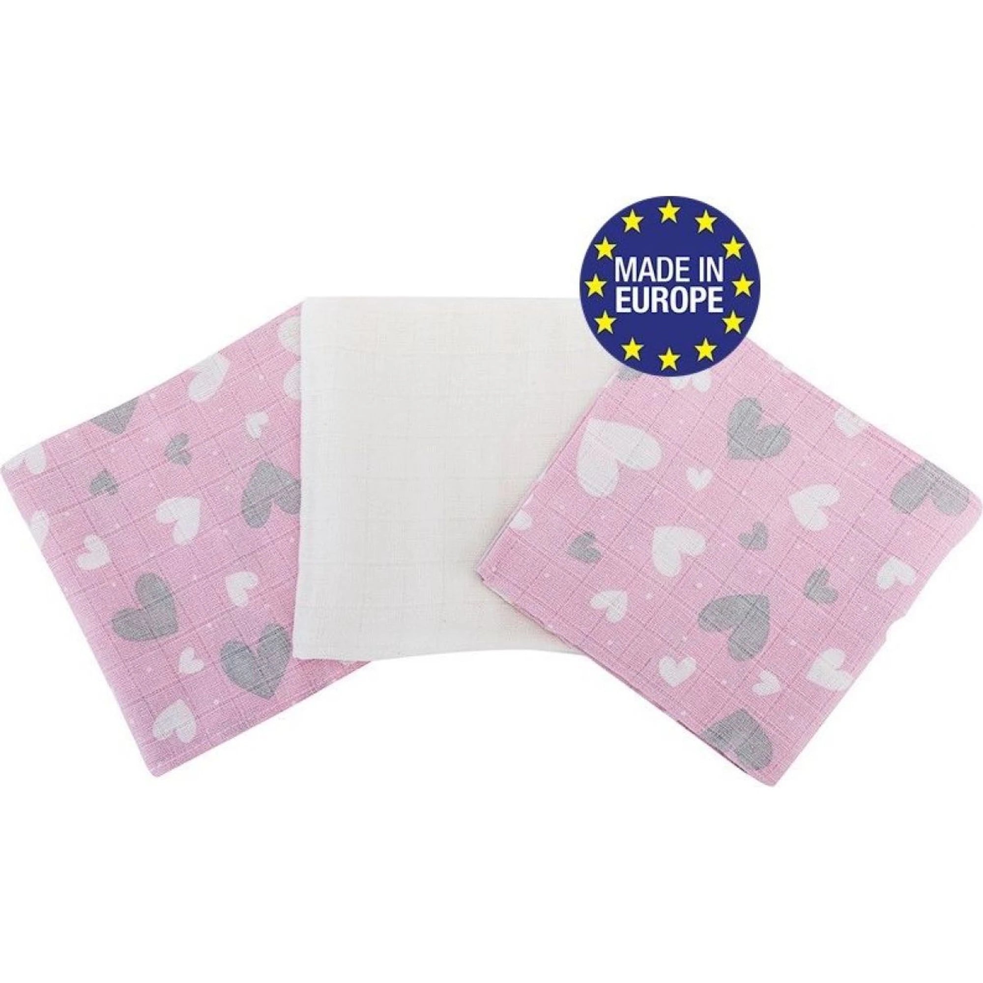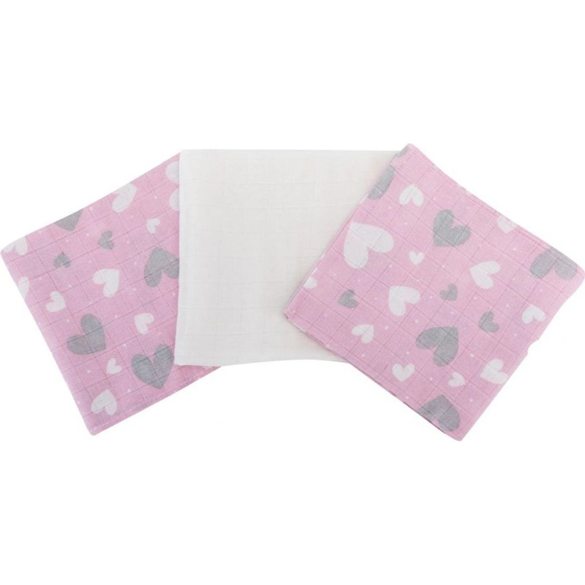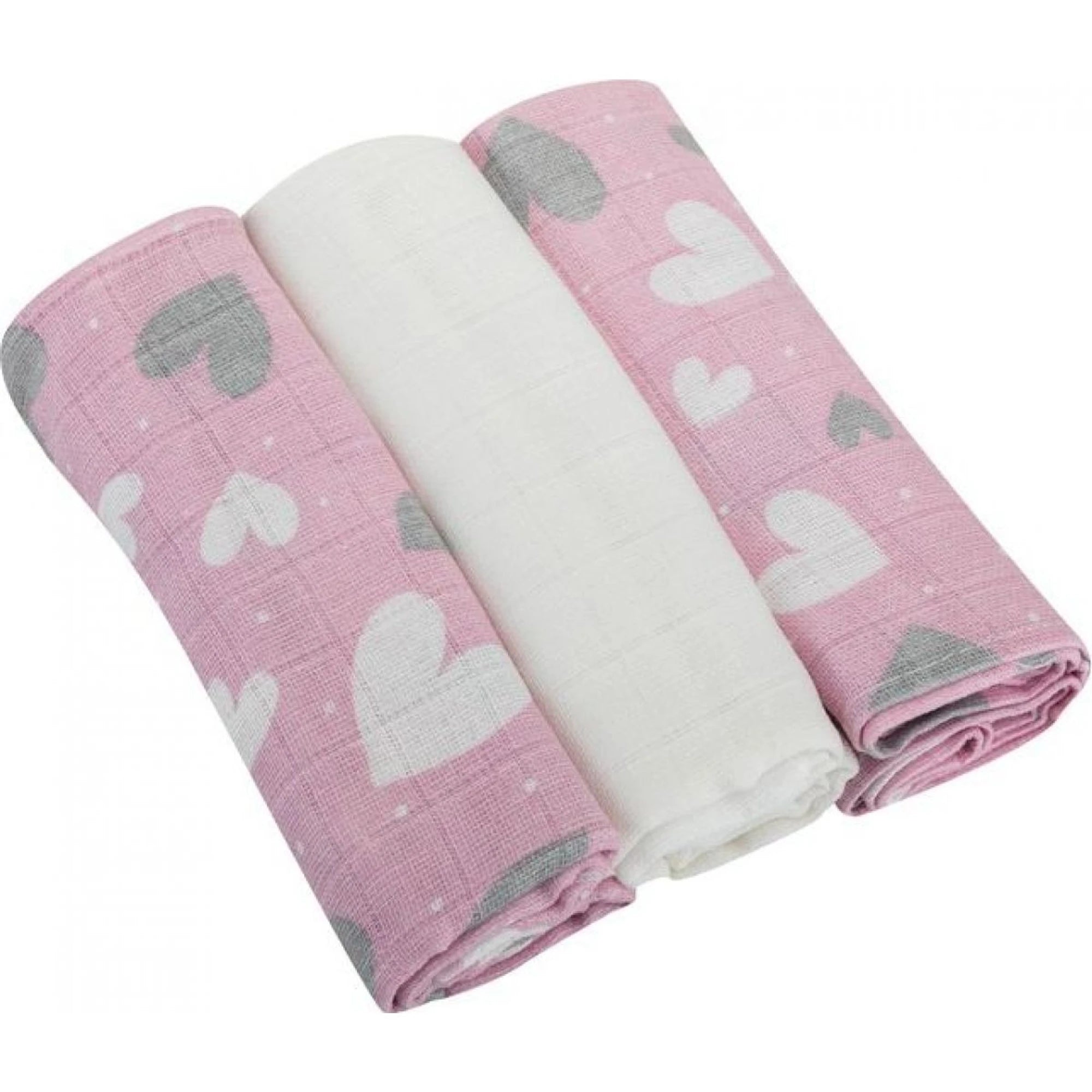 Pleny bavlna 3 ks Premium 140 g na m2 potisk 80 x 70 Srdíčko růžová