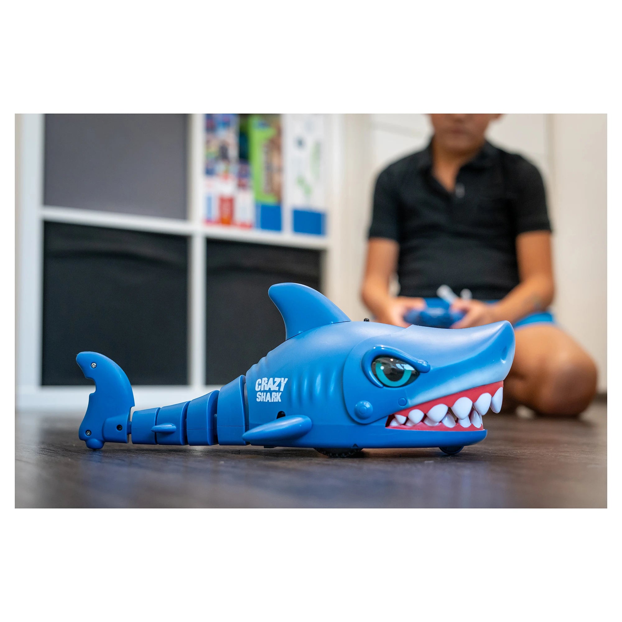Tady připlouvá suchozemský predátor! Jezdící žralok s odnímatelným ocasem na rovném povrchu předvádí realistické kousky jako otevírání a zavírání tlamy, simulaci plavání a lovení v moři, spolu se zvukovými efekty. Hýbe se všemi směry a občas se roztočí, že se vám zatočí oči. Díky snadnému dálkovému ovládání a dvěma zabudovaným kolečkům jsou jeho pohyby plynulé a nebezpečně zábavné. Vytáhne to na rychlosti až 5 km/h! A ještě přehrává hudbu, takže klidně rozjede taneček. Děti si navíc mohou vyzkoušet programování – stačí stisknout tlačítka a dát žralokovi příkazy k pohybu, které poslušně následuje.