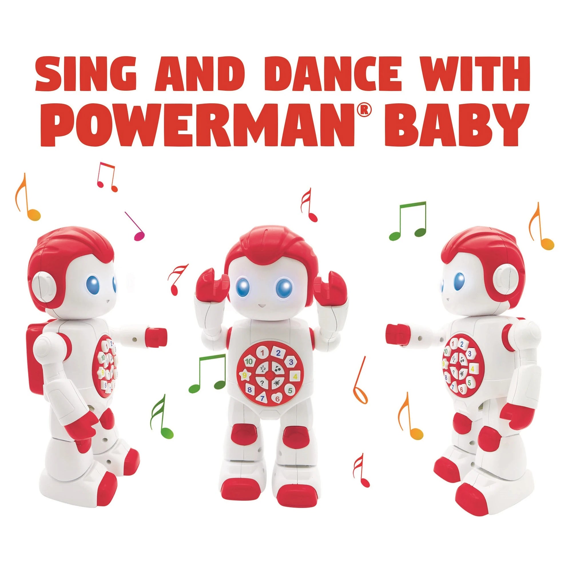 POWERMAN® Baby je dalším členem rodiny robotů, který kombinuje show i chytré učení. Tenhle roztomilý parťák měří 22 cm a je ideálním společníkem pro děti starší 3 let. Se zábavnými zvuky a světelnými efekty rozsvítí pokoj a přidá režim učení barev, čísel a tvarů, aby si děti dovednosti pilovaly hravě – v angličtině! Stačí zmáčknout jedno z tlačítek a robot zopakuje odpovídající hodnotu. Powerman Baby navíc prověří znalosti pomocí zábavných kvízů, na které se odpovídá stiskem správného tlačítka. A když přijde čas na párty, stiskni hlavu a robot to rozjede zpěvem a tancem!
