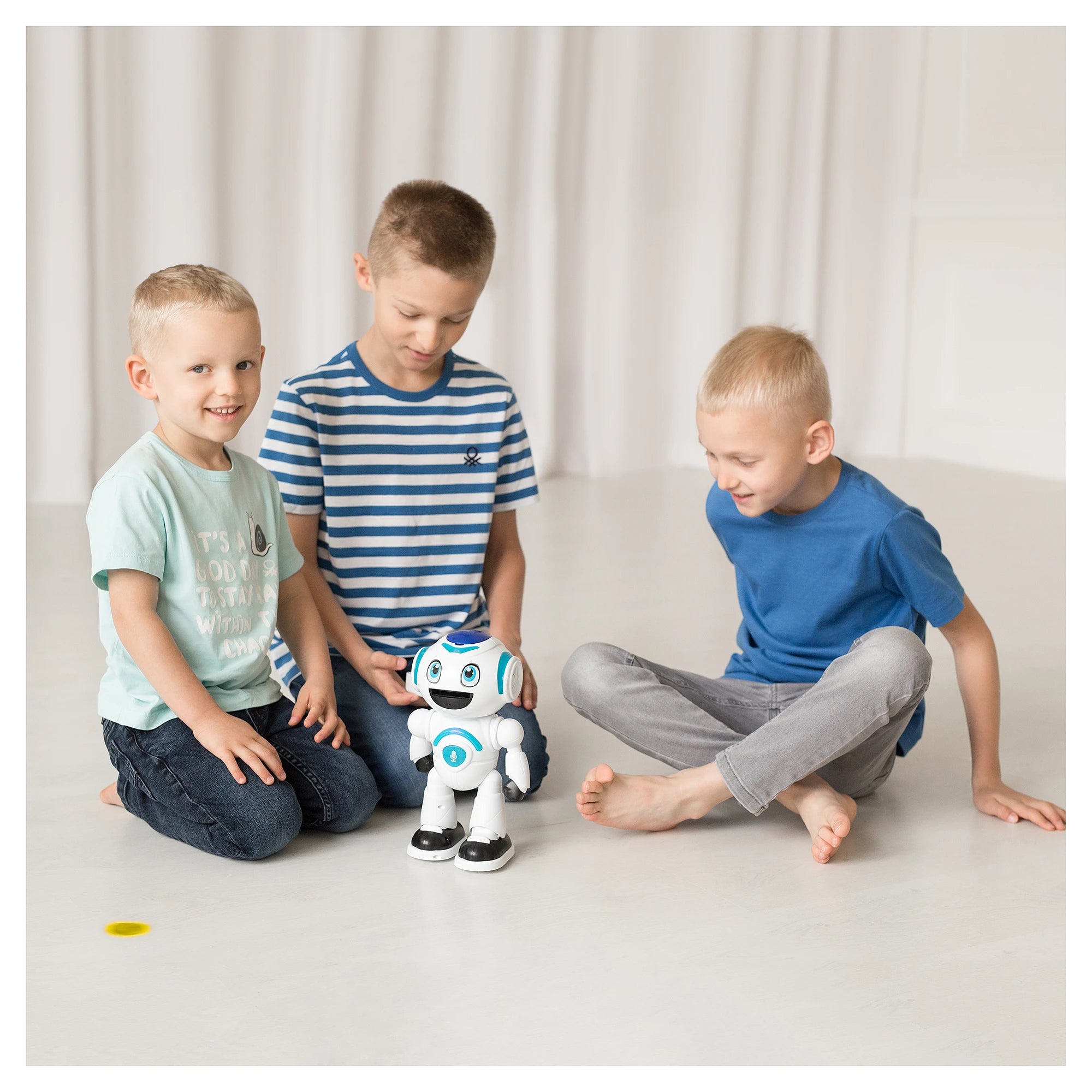 POWERMAN® Master je dalším členem rodiny robotů, co zvládne děti bavit i učit – a ještě u toho dělat show. Tenhle inteligentní mluvící parťák na dálkové ovládání umí vyprávět a vytvářet příběhy a má i skvělý režim hádání zvířat – to všechno v angličtině! Stačí si potají vybrat jakékoliv zvíře, robot položí několik otázek s odpověďmi Ano/Ne/Nevím a zkusí ho uhodnout. A klidně si vyměníte role: děti hádají zvířecí zvuky v zábavném kvízu. Umí zpívat i tančit a díky programovací funkci lze naplánovat až 40 akcí, přidat hudbu a vytvořit si vlastní tance a choreografie, které si robot zapamatuje. Funkce nahrávání, přehrávání a karaoke mu dovolí opakovat věty dětí svým robotickým hlasem a klidně proměnit slova v chytlavé písničky. A jako bonus? Střílí barevné pěnové disky.