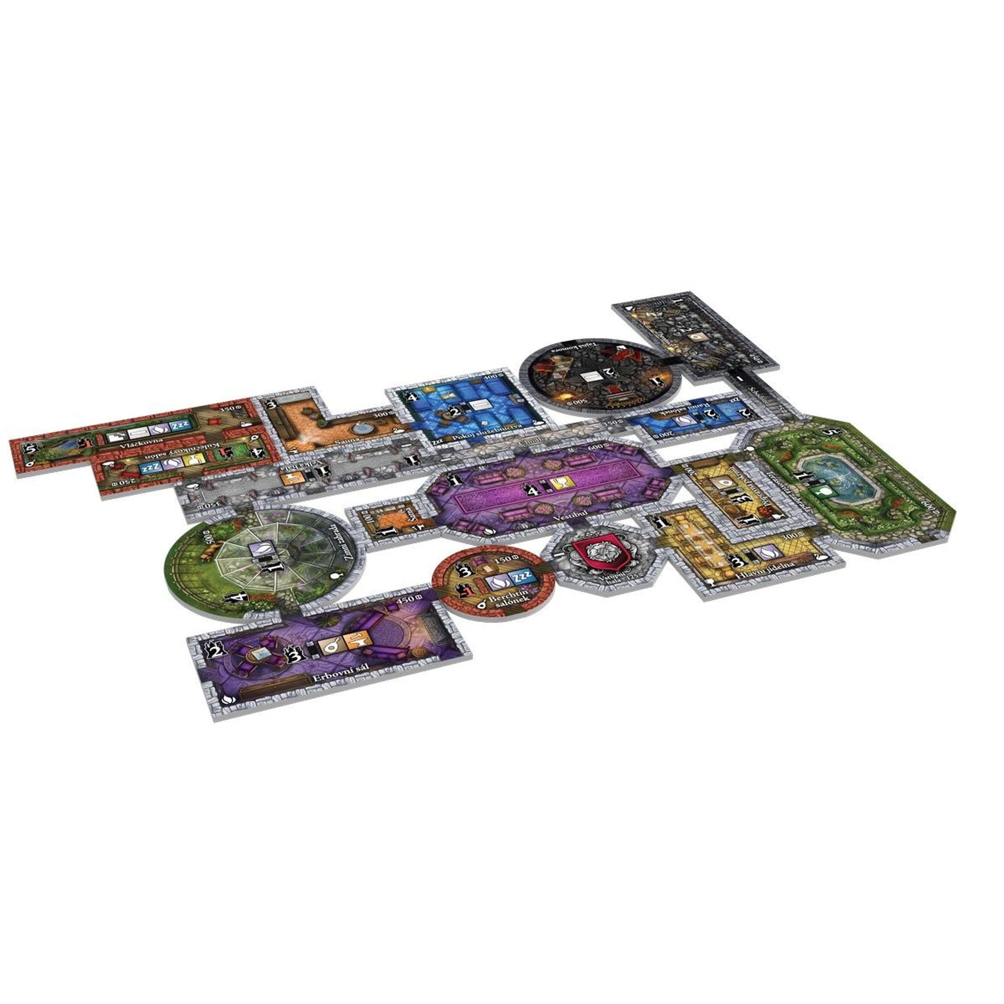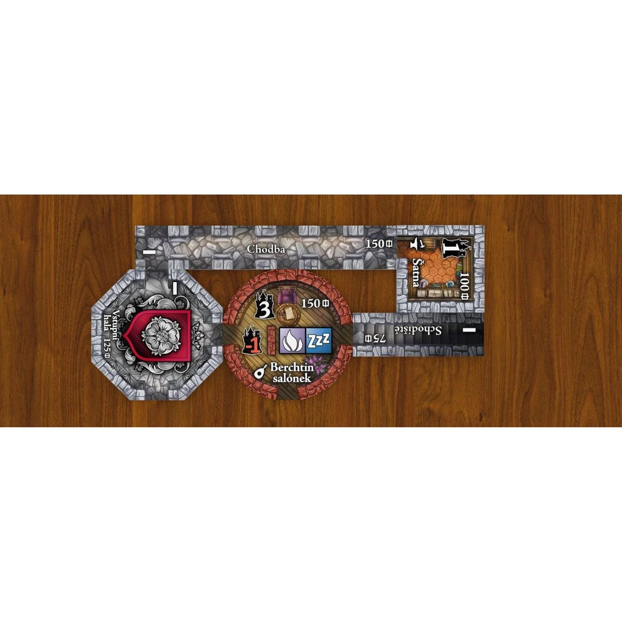 • 4 přehledové karty, 75 destiček místností – přehled a materiál na velkolepé stavění