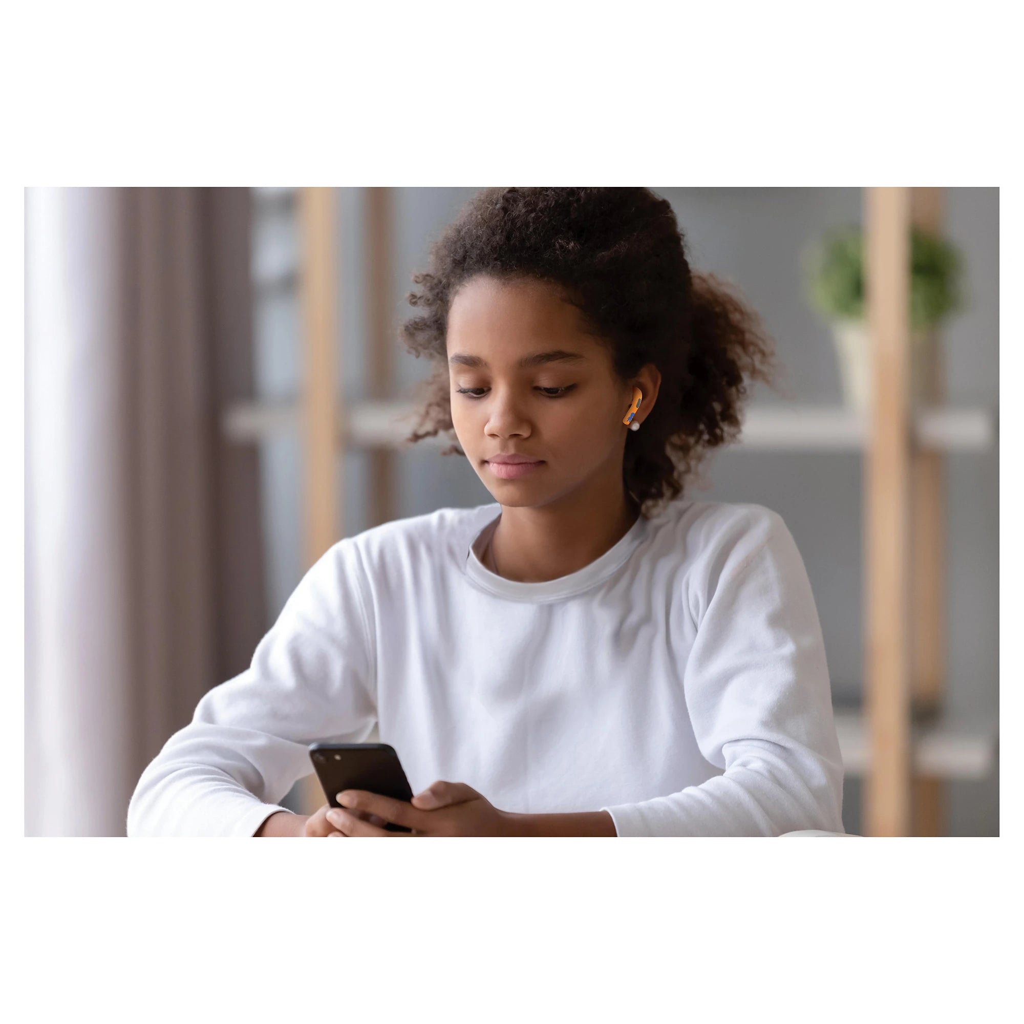 Tyhle dětské stereo pecky jsou chytrá kombinace stylu, praktičnosti a bezpečnosti. S omezenou hlasitostí na 85 dB drží decibely na uzdě a zajišťují ochranu dětských ušních bubínků – žádné škodlivě vysoké hladiny hluku. Tato lehká bezdrátová sluchátka si rozumí se všemi chytrými telefony, tablety i přehrávači s technologií Bluetooth. Dotykové ovládání a mikrofon na každém sluchátku zvládnou přijímat hovory a snadno řídit hudbu (přehrávání/pauza/další/předchozí). Kompaktní pouzdro, které se v pohodě vejde do kapsy, slouží nejen k uschování, ale hlavně k nabíjení. Sluchátka vydrží 3 až 4 hodiny nepřetržitého poslechu a nabídnou vysokou kvalitu zvuku.