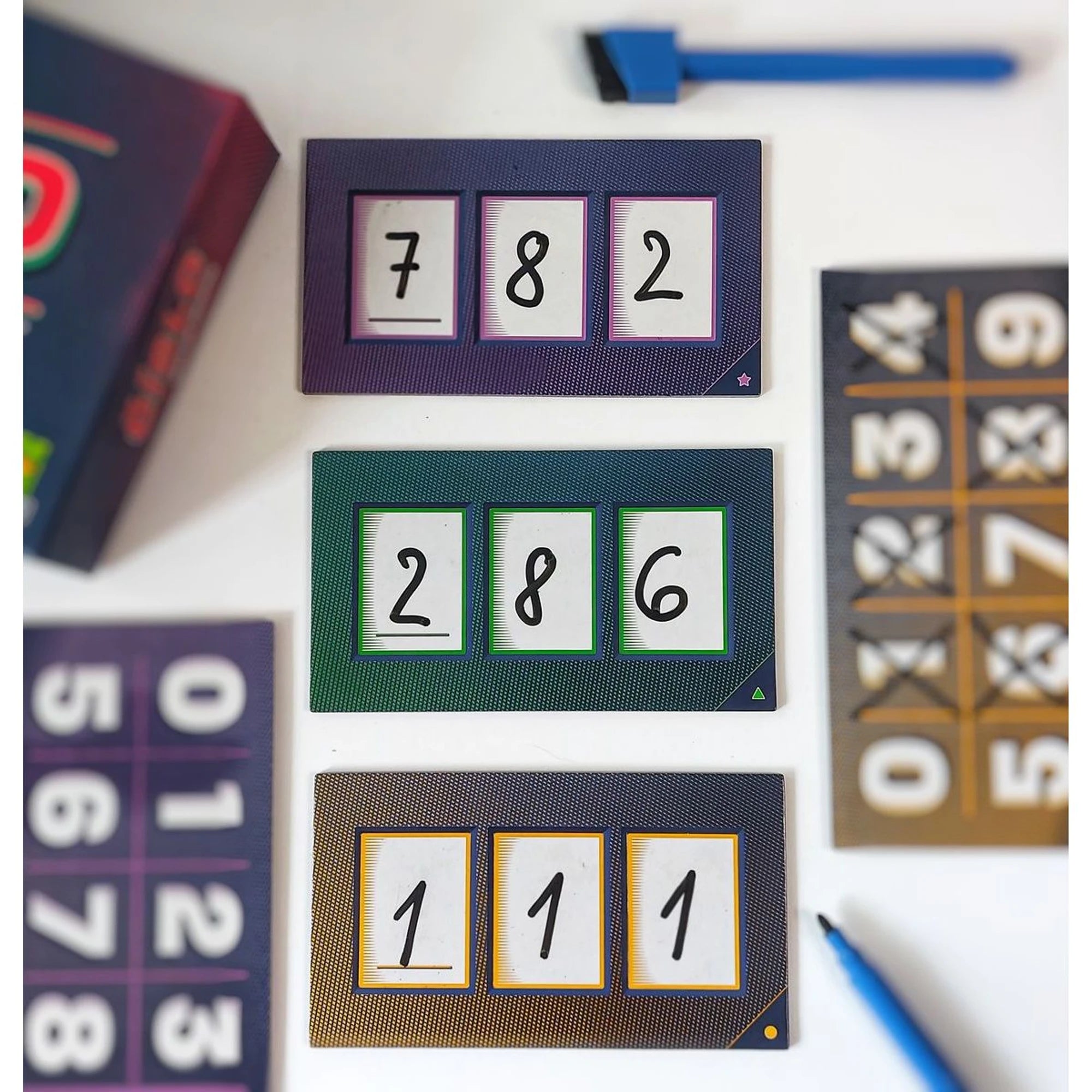 V každém tahu si každý z hráčů tajně zvolí číslo mezi 000 a 999 a načmárá ho na svou destičku. Pak všichni zároveň odhalí – tadá! Vyšší číslo slibuje víc bodů, ale je to vabank: pokud tohle číslo sdílí aspoň jednu číslici s nižším číslem jiného hráče, body jdou do kytek. Jak tahy ubývají, bezpečná čísla mizí a každé další rozhodnutí má čím dál větší strategickou váhu.