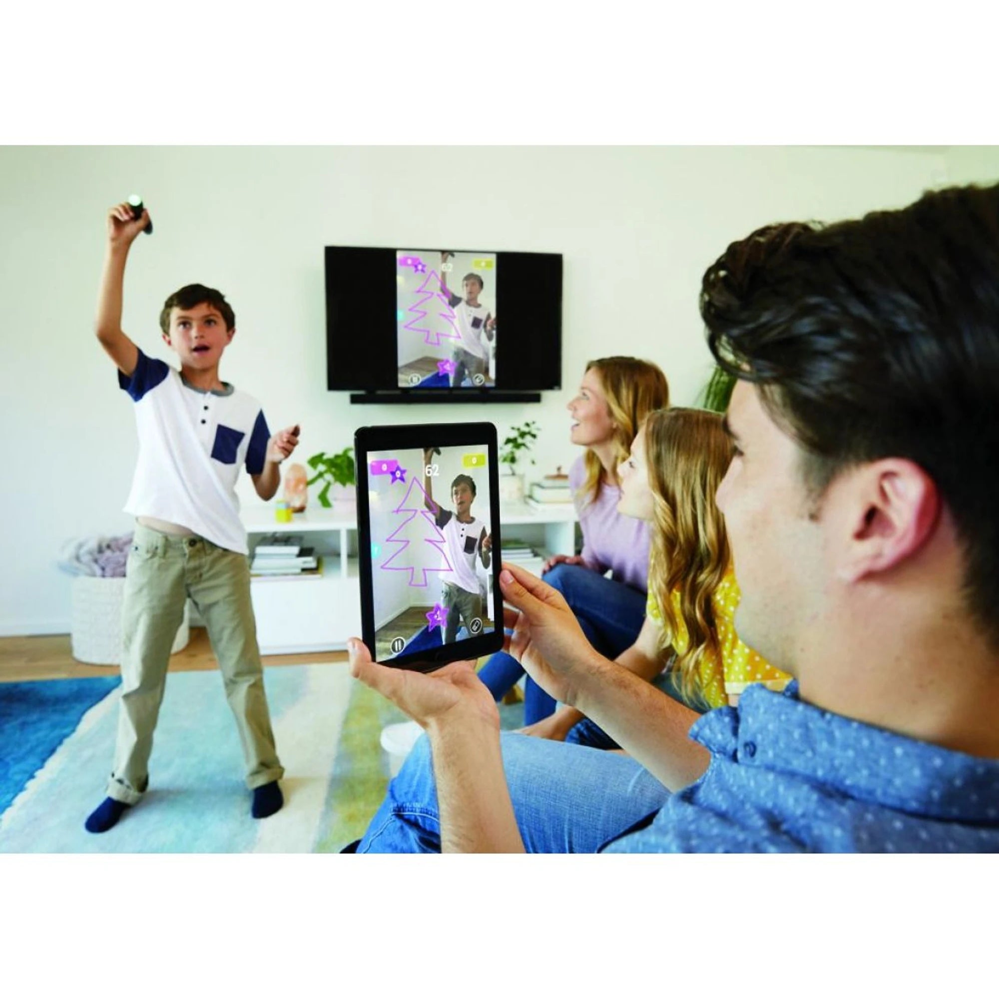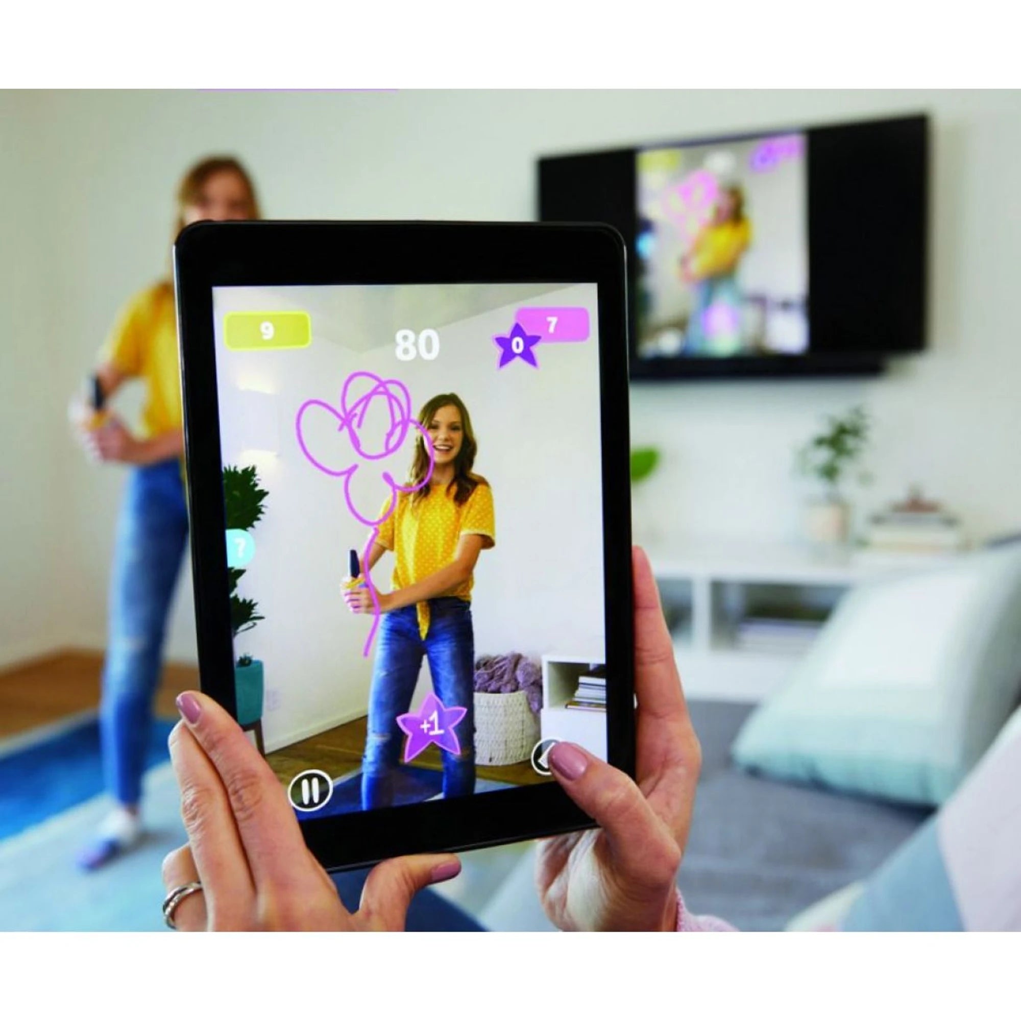 Osvícený hrot pera stačí mířit k foťáku chytrého zařízení. Obrázky lze i ukládat. V aplikaci se dá s výtvory pohrát – třeba posunout nakreslený klobouk na hlavu, a tak dál. Aplikace Pictionary Air™ umožňuje nastavit časy kol i jejich počet, aby měli začátečníci a mladší hráči více času na kreslení.