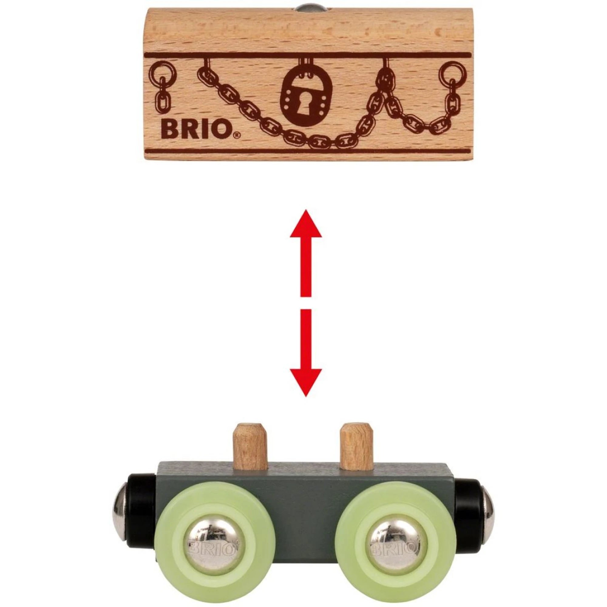 Černá lokomotiva se zapojeným vagónkem je dalším dopravním hrdinou systému Brio World. V zadní části má lokomotiva napevno usazený magnetek, takže vagónek jen cvakne a jede s ní jako přilepený.