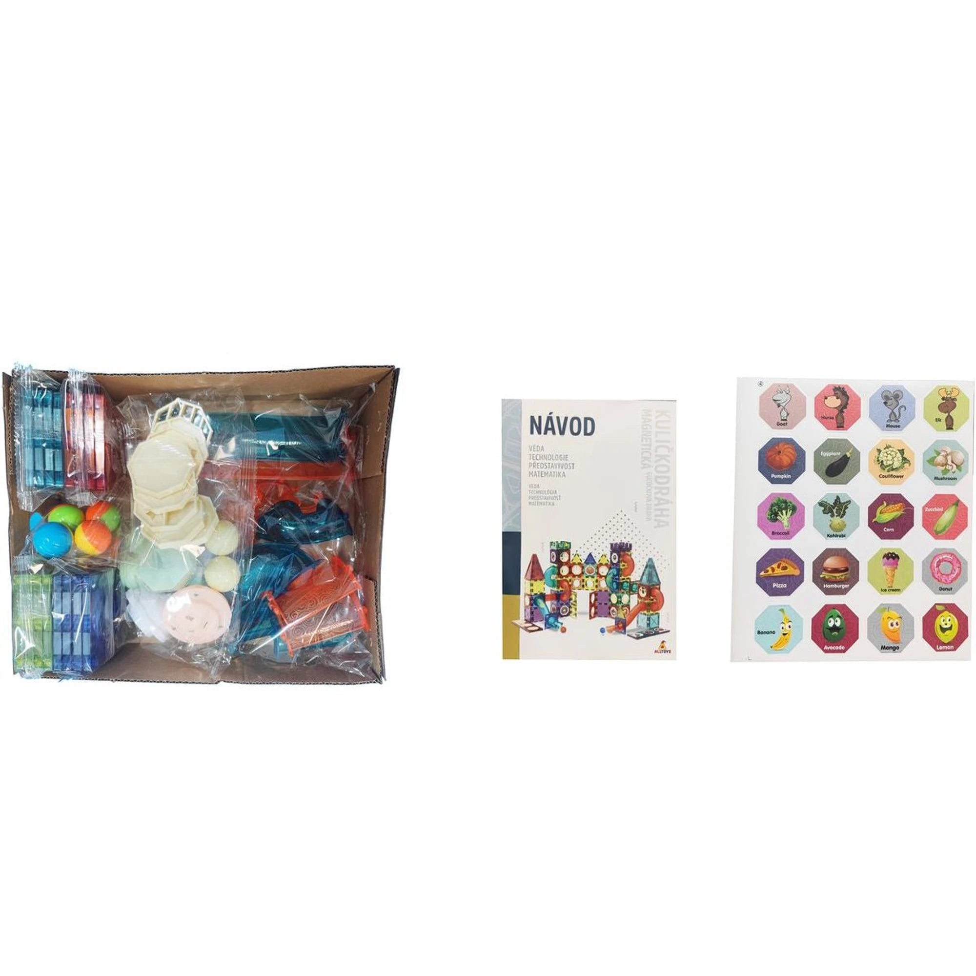 Sada různě tvarovaných dílků, ze kterých děti postaví kuličkovou dráhu rychleji, než kulička řekne „brzda“.