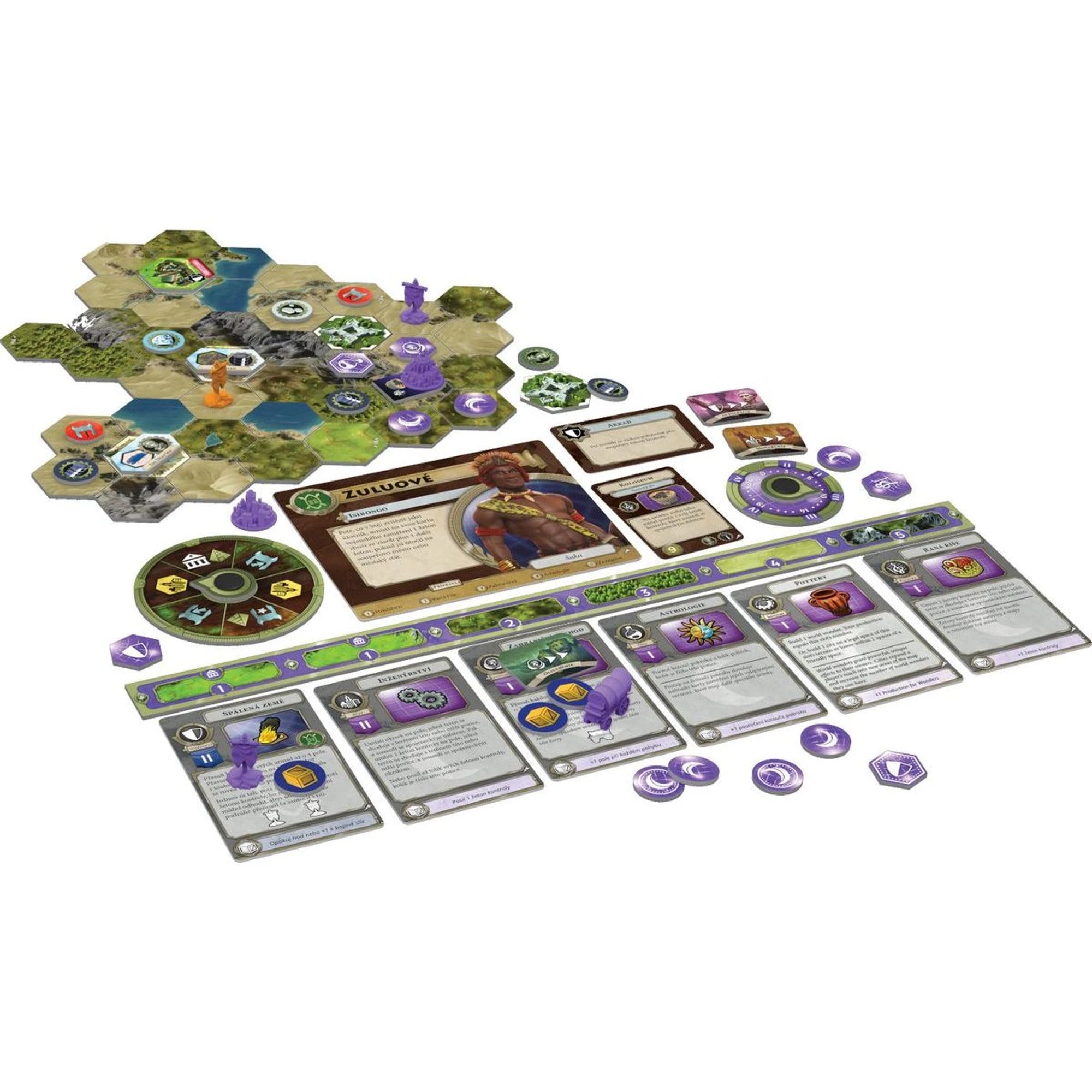 • 6 typů vlád, 5 typů okrsků, 5 pevností, 8 karet vítězství