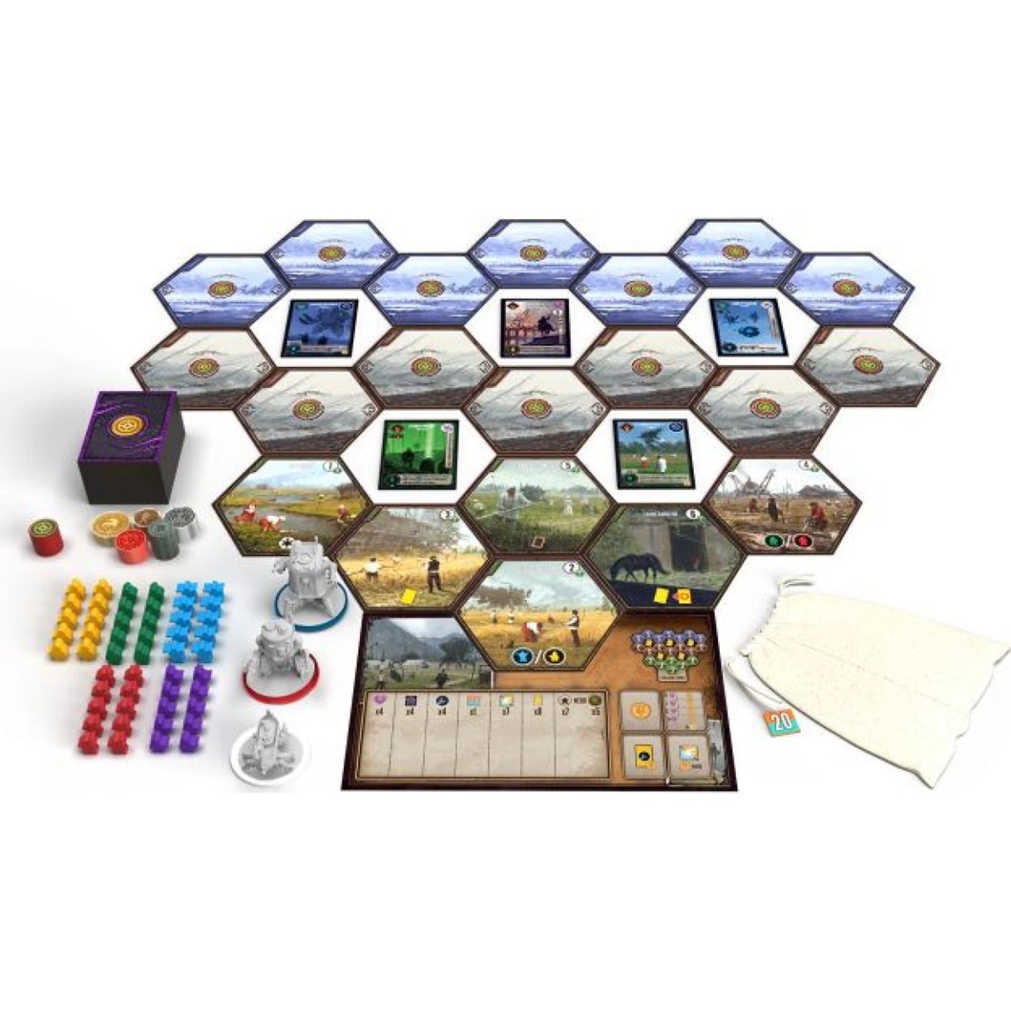 • 20 šestiúhelníkových destiček lokací, 50 dřevěných figurek