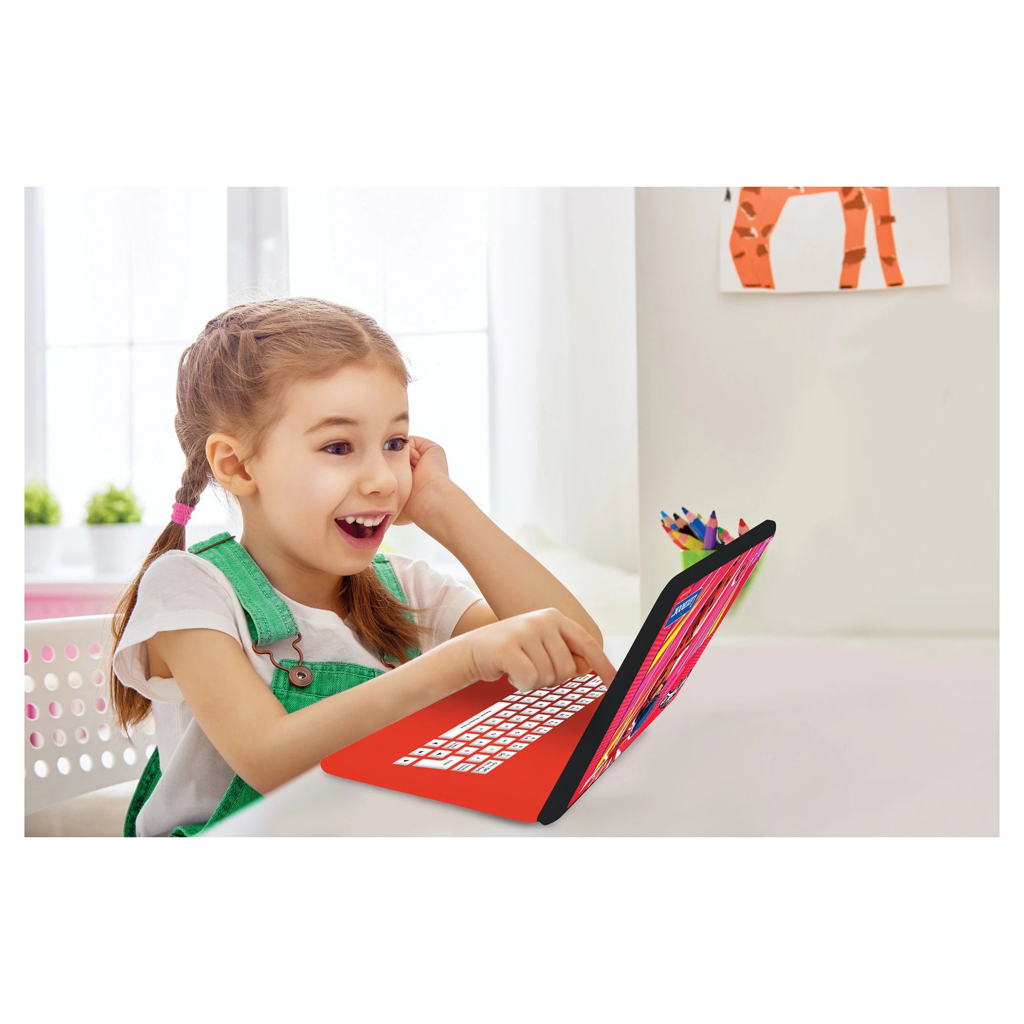 Když se k herním aktivitám přidá prvek vzdělávání, dějí se chytré věci. Tenhle dětský notebook je ideální parťák. Vypadá jako opravdový, má reálná myš a LCD displej o velikosti 5,1 x 9,7 cm – lákadlo pro malé nadšence, kteří se chtějí přiblížit dospěláckému světu. Čeká tu 124 aktivit z různých oblastí, z nichž polovina je v angličtině a druhá polovina ve francouzštině – zábavné učení, trénink paměti, rychlosti a zlepšování všeobecných dovedností. Na výběr je matematika, kde se děti naučí nejen čísla, ale i základní početní operace. Výuka dvou jazyků je seznámí s písmeny, slovy a výslovností a dvojjazyčná klávesnice umožní vyzkoušet si psaní. Hraní paměťových her potrénuje logiku a nechybí ani hudba, kde děti určují správné znění melodií. V notebooku jsou také hry a poznávání času.
