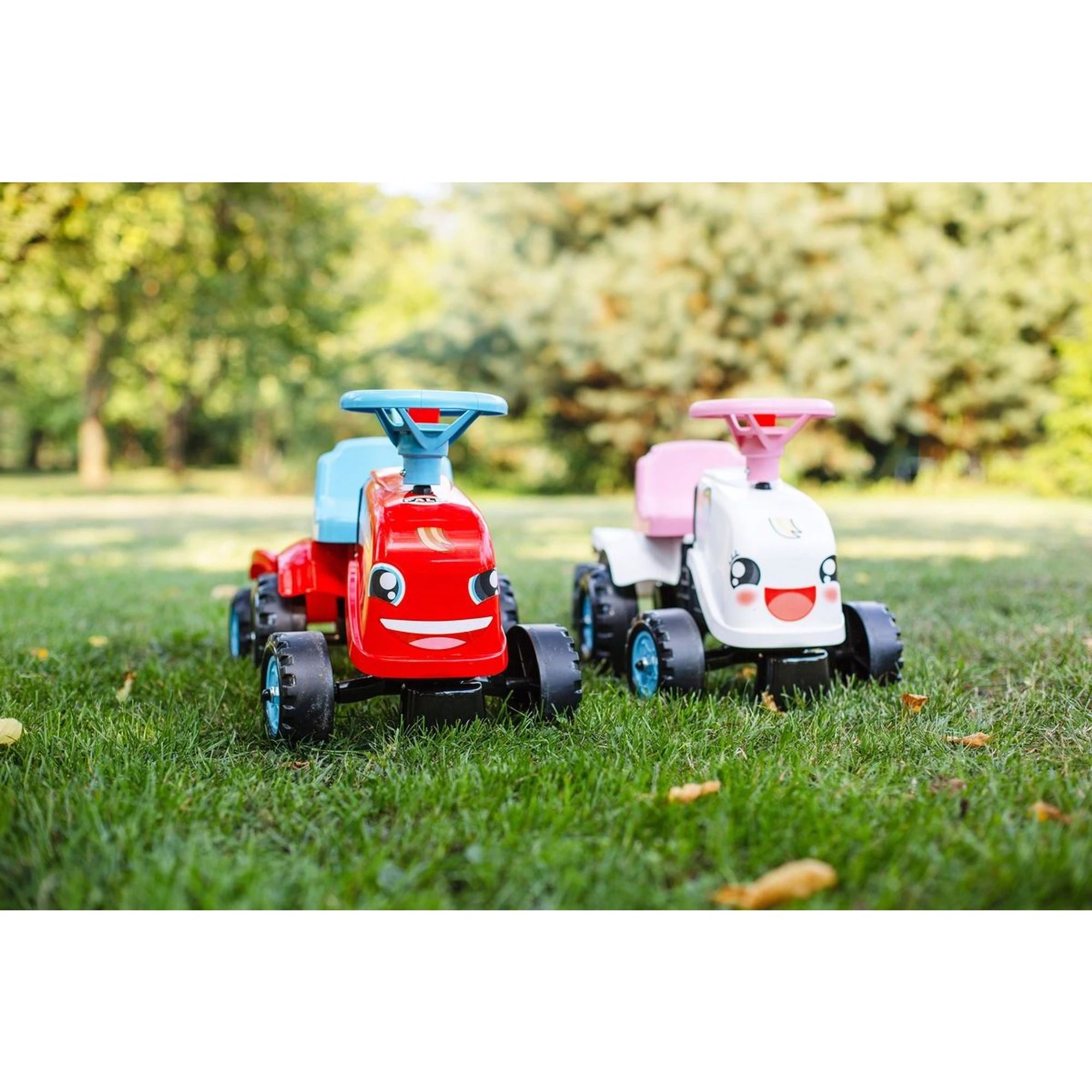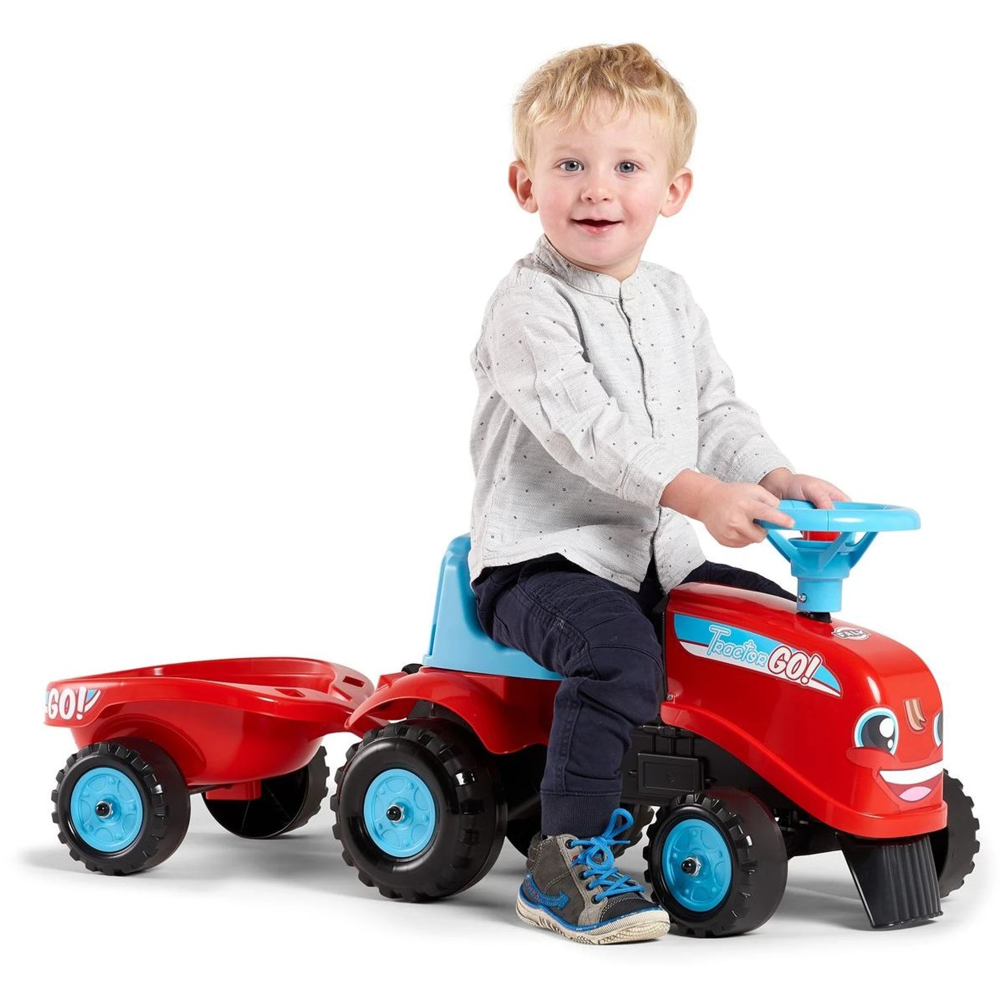 Traktor Go Farm s volantem a valníkem je stvořen pro nejmenší jezdce, kteří chtějí trénovat zábavnou jízdu i svou rovnováhu – a to pěkně stylově.
