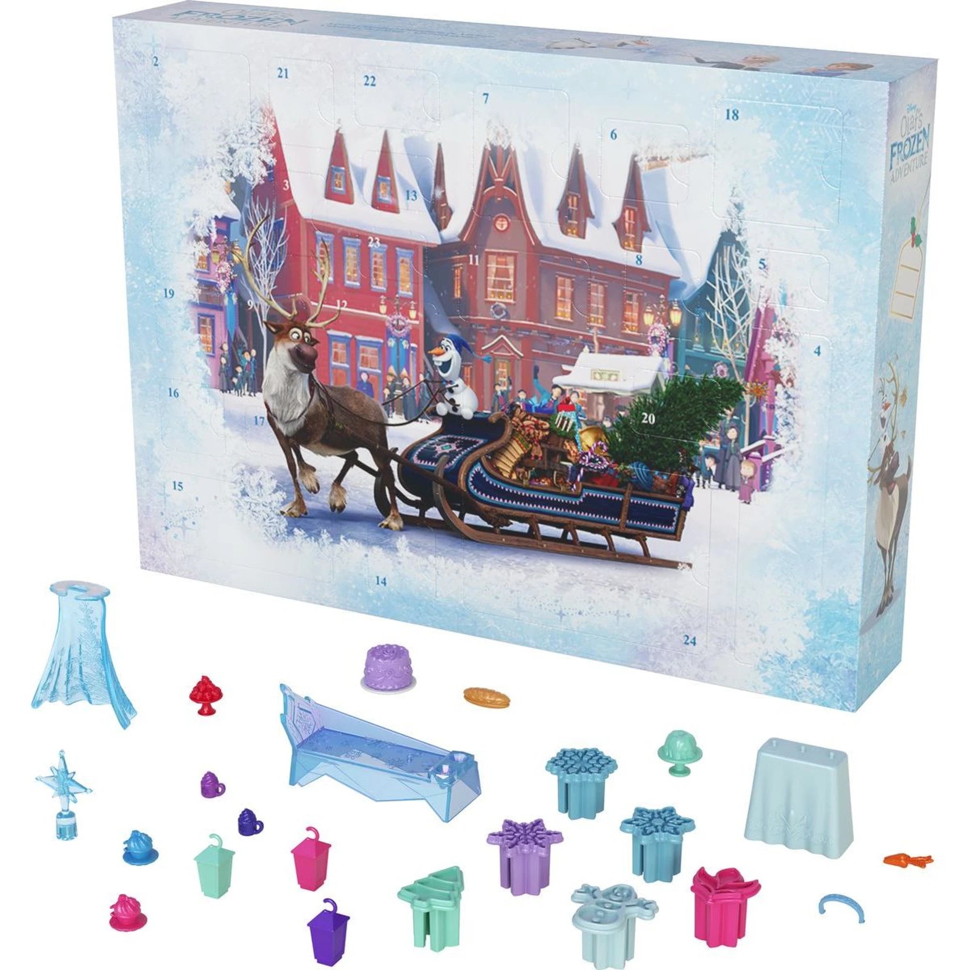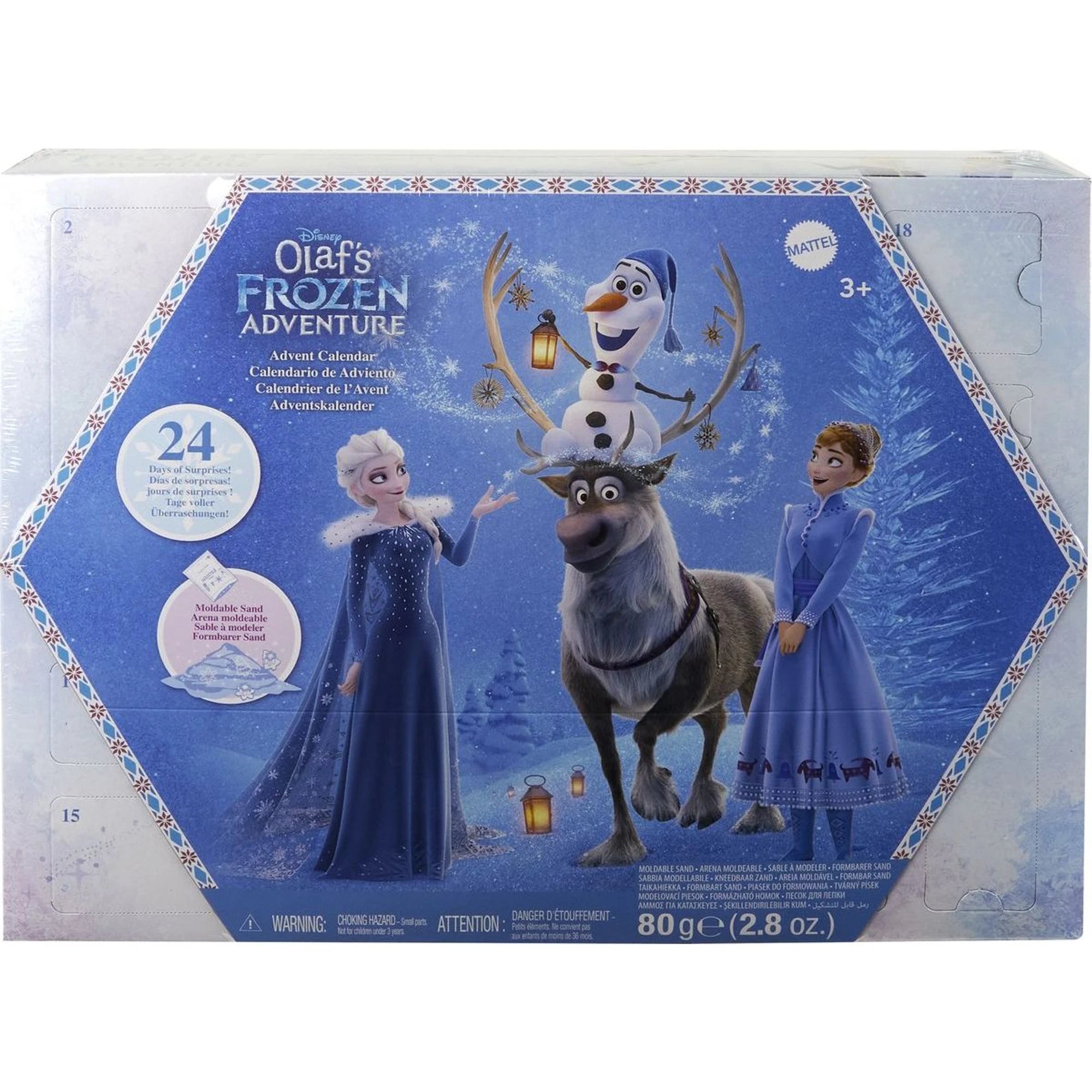 V předvánočním čase se otevře jedno z 24 okének každý den – pěkně poctivě. Za každým je malé překvapení a drobné postavičky, takže se děti ve svátečním čase snadno propojí se světem Anny a Elsy. A upřímně? Uteče to rychleji než Olaf na čerstvě upravené sjezdovce.
