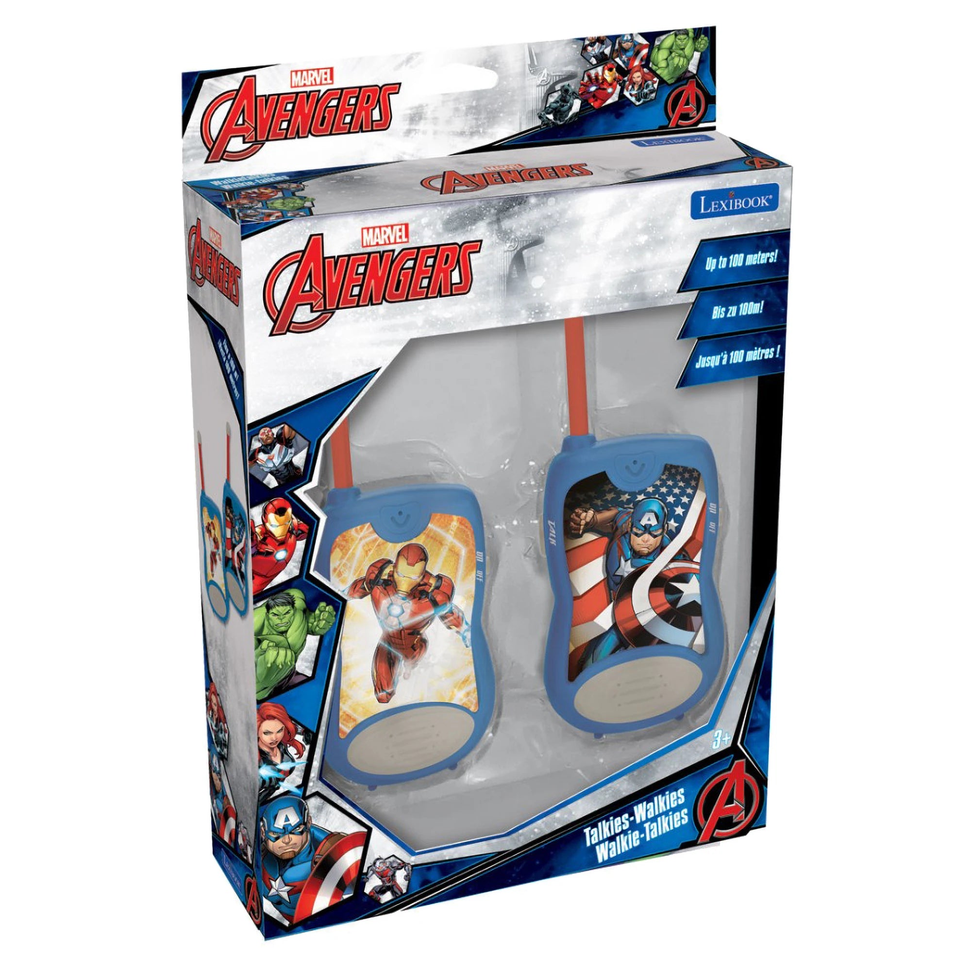 • Dvě vysílačky pro děti Avengers s dosahem přenosu až 100 metrů venku (může se lišit v závislosti na terénu a povětrnostních podmínkách)