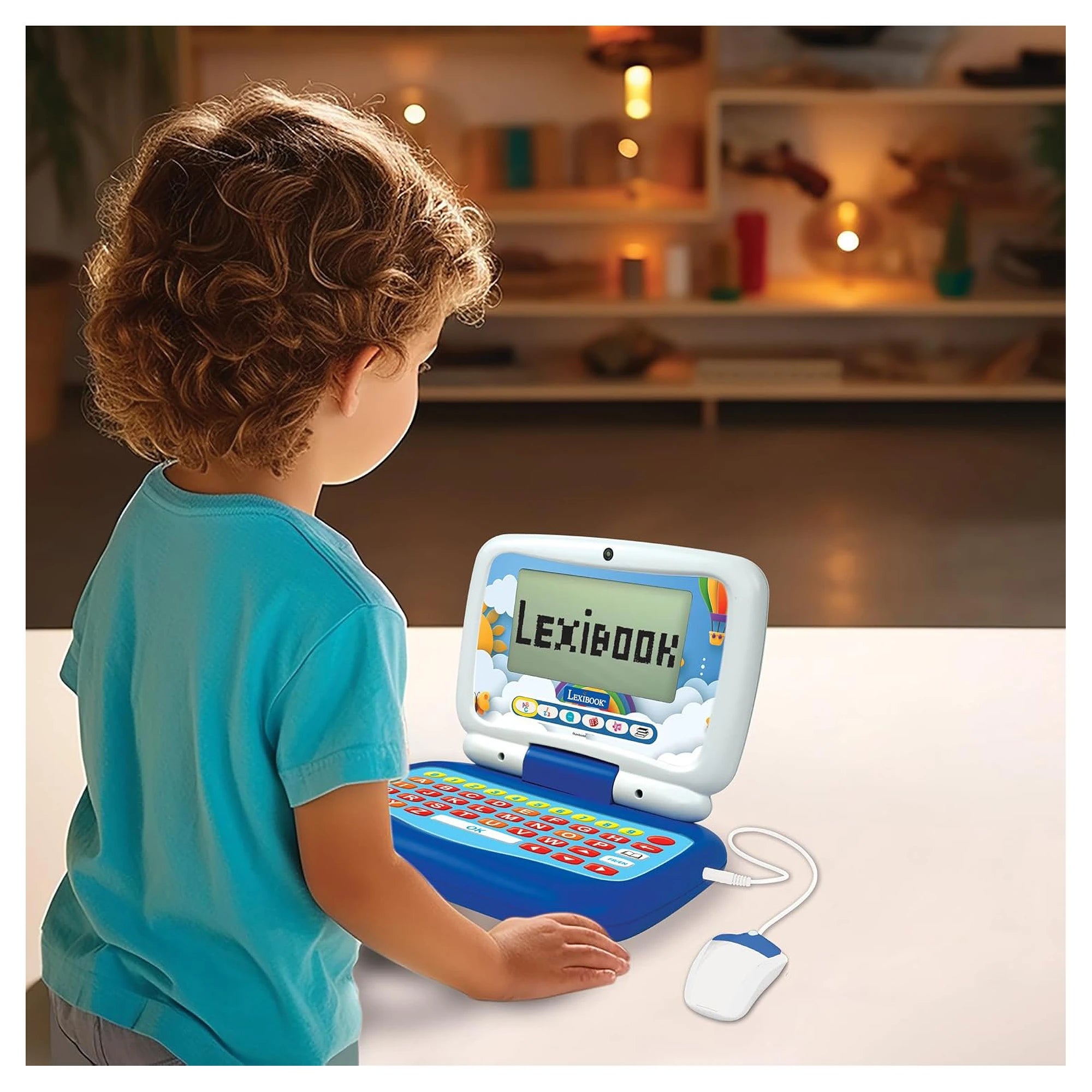 Dvojjazyčný výukový počítač pro malé gény – nabízí 40 aktivit (20 v angličtině a 20 ve francouzštině), takže slovíčka lítají sem i tam. Díky sylabické metodě čtení (dělení slov na slabiky), vzdělávacím hrám, interaktivním příběhům, matematickým cvičením a hudebním aktivitám pomáhá rozvíjet jazykové a kognitivní dovednosti dítěte. Realistický design s funkční klávesnicí, myší s 20 cm kabelem a 5" (12,7 cm) obrazovkou přibližuje dětem práci na skutečném počítači – bez powerpointů, zato se zábavou.