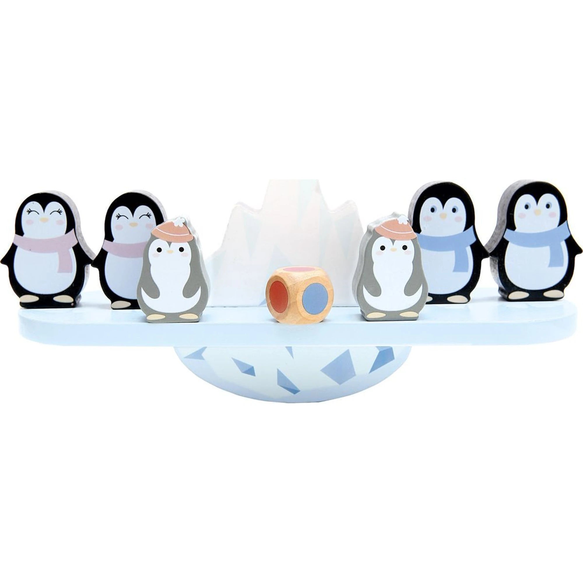 Balanční hra, která z dřevěných tučňáčků udělá malou polární misi – skládají se rovnoměrně na kru a udržují si chladnou hlavu i na tenkém ledě.