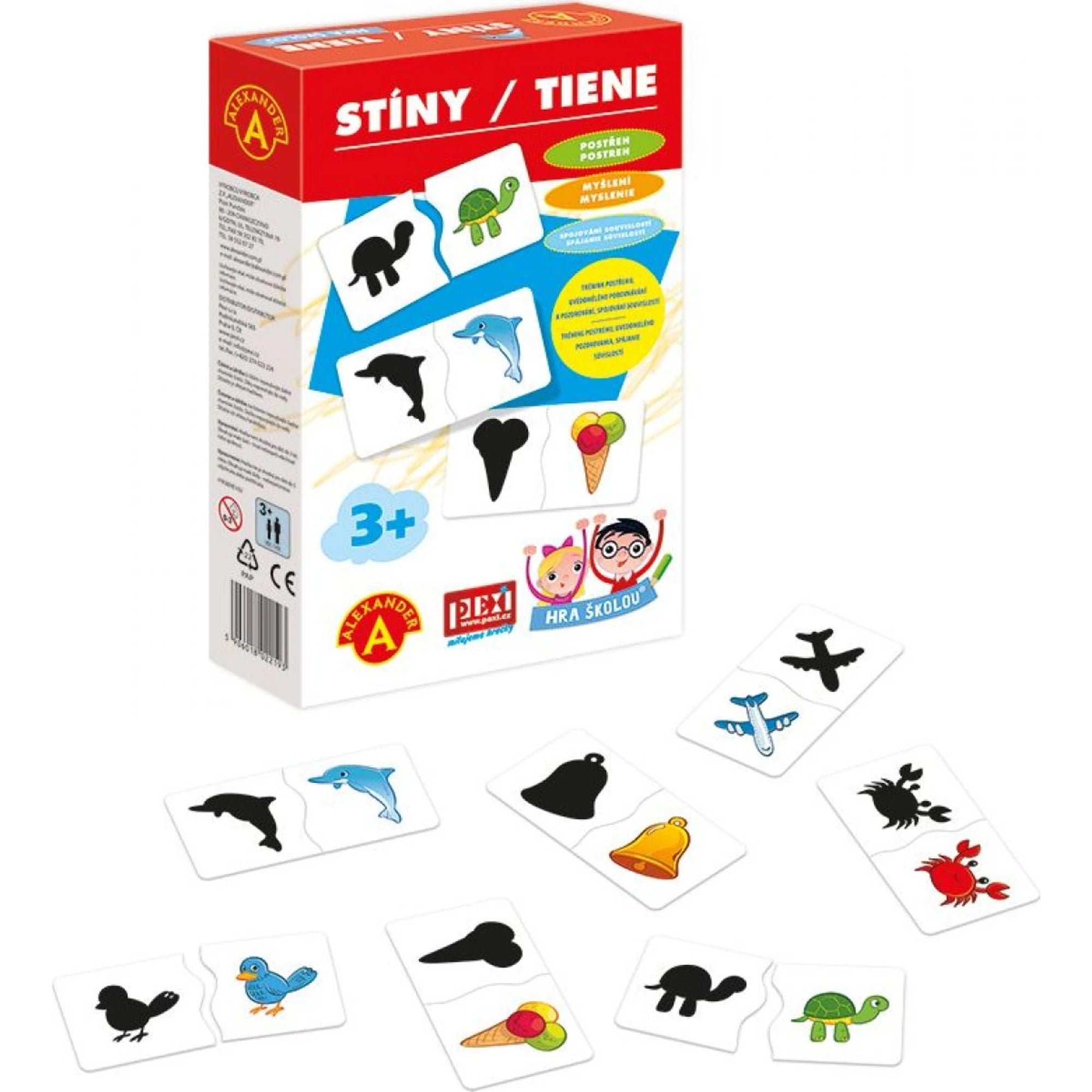 Stíny se tu stávají hvězdou stolní hry: děti kartičky zamíchají a pak loví a spojují správné dvojice černobílého a barevného obrázku stejného tvaru.