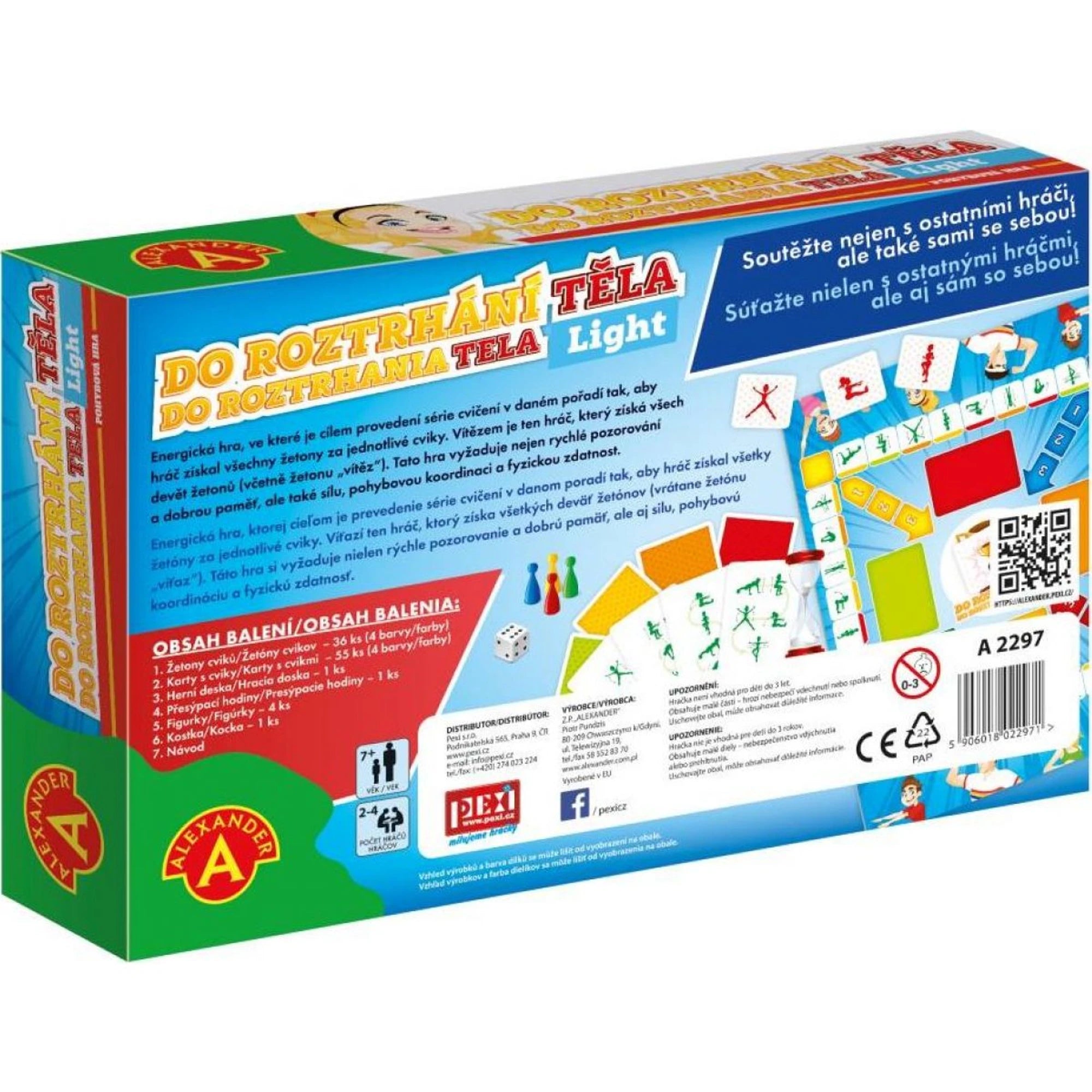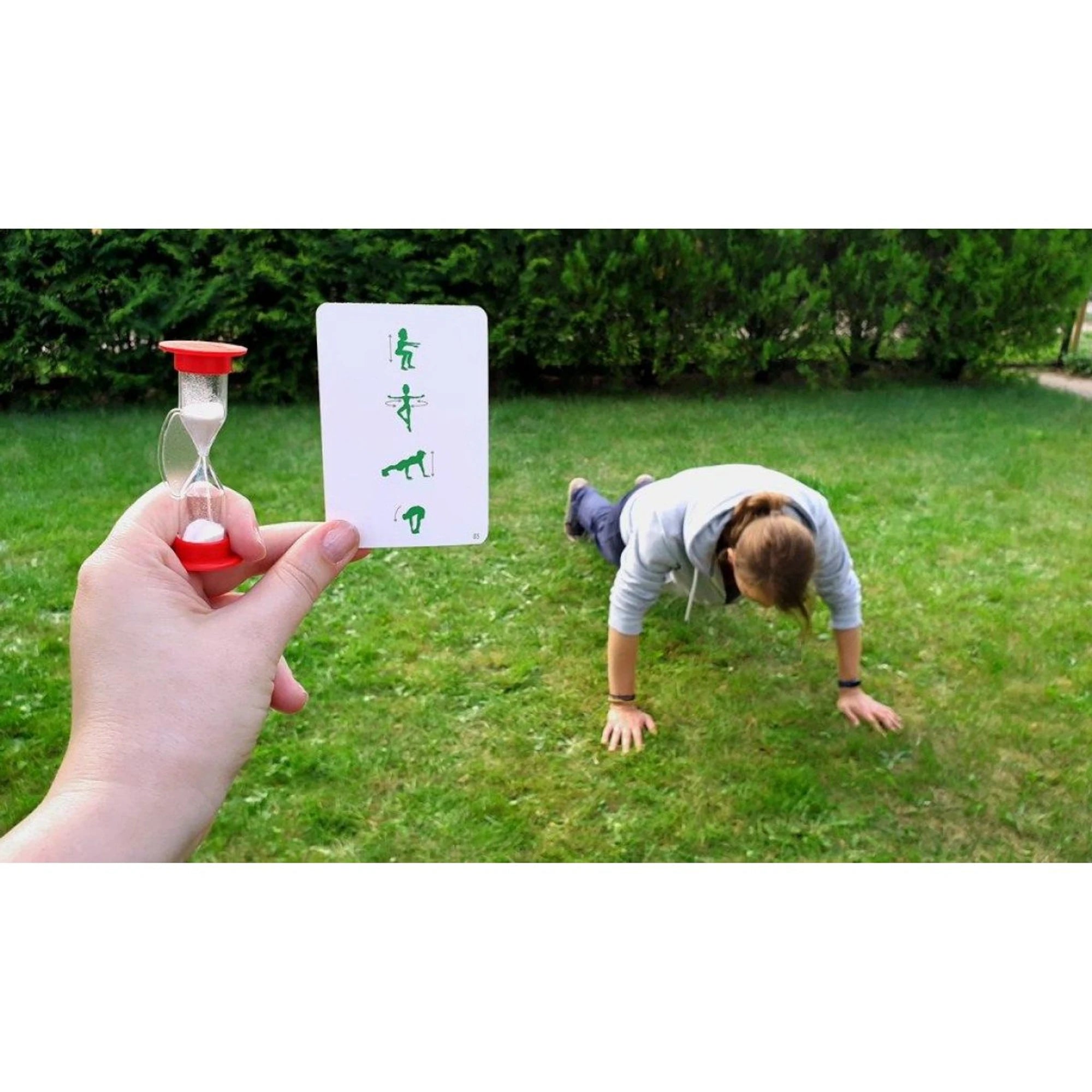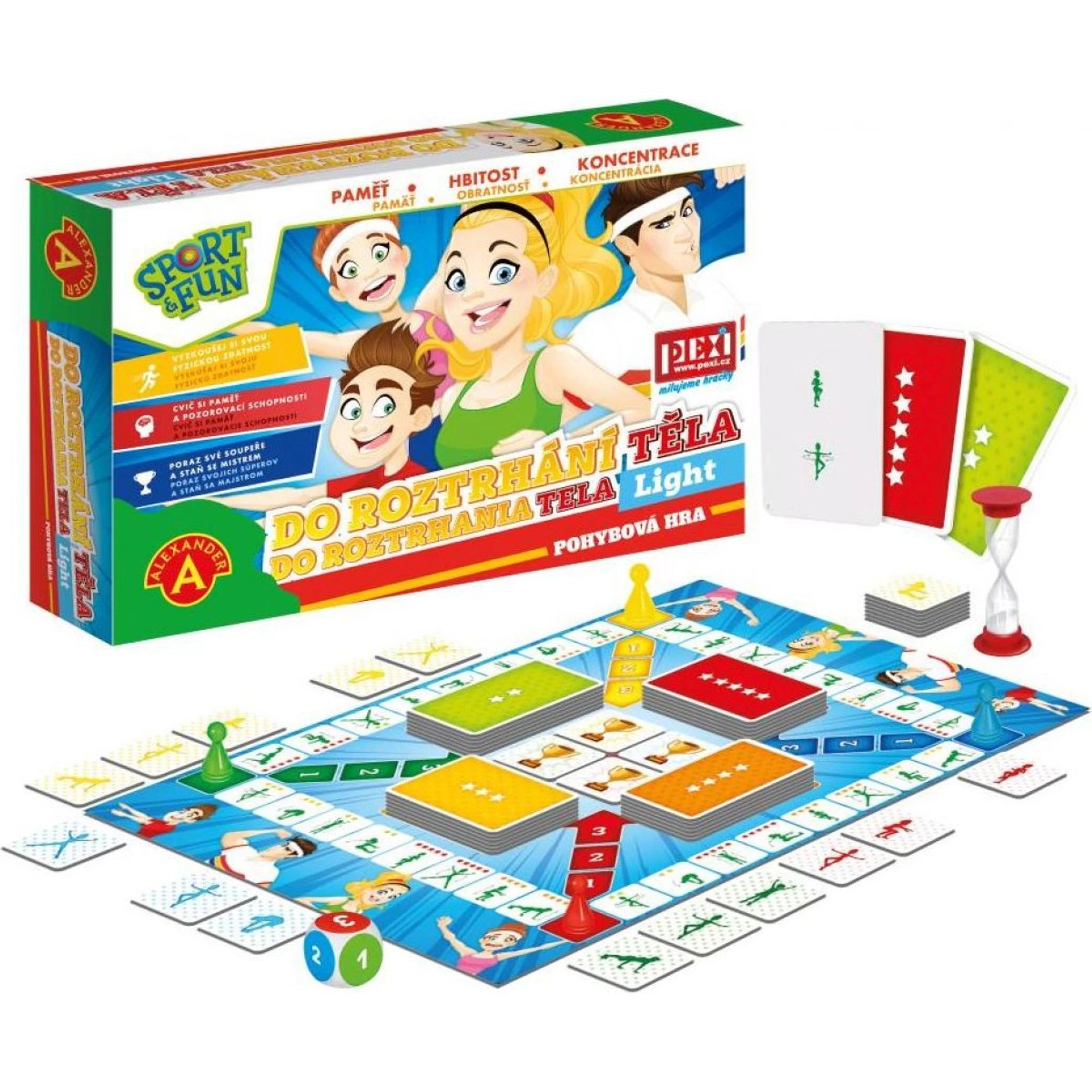 • 55 ks karet s cviky (4 barvy), herní plán, přesýpací hodiny