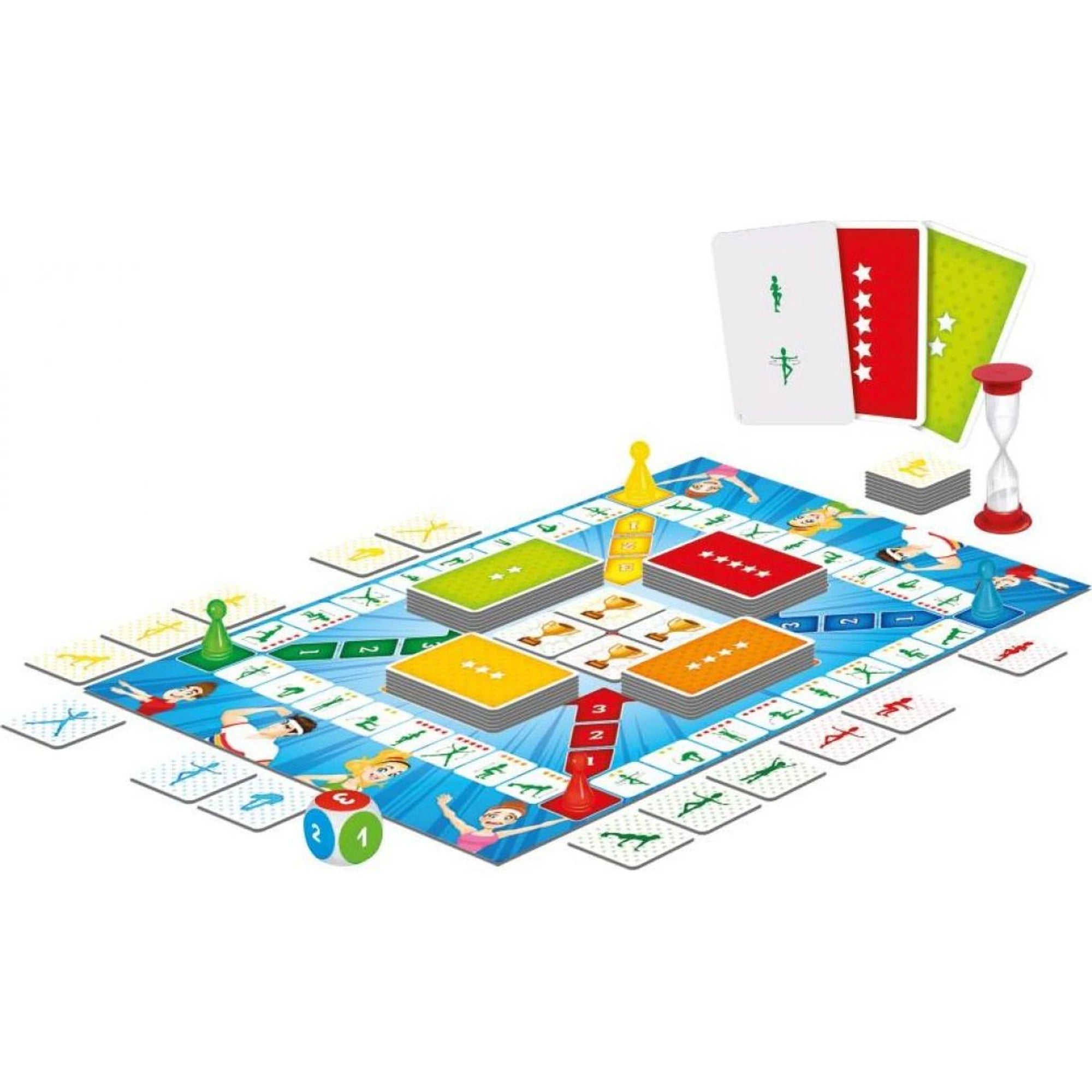 Množství hvězdiček na poli určuje, který ze 4 typů cvičebních karet se bere z balíčku. Čím více hvězdiček, tím delší sestava cviků a vyšší obtížnost. Ikona na políčku ukazuje, který žeton do skládačky se získá.