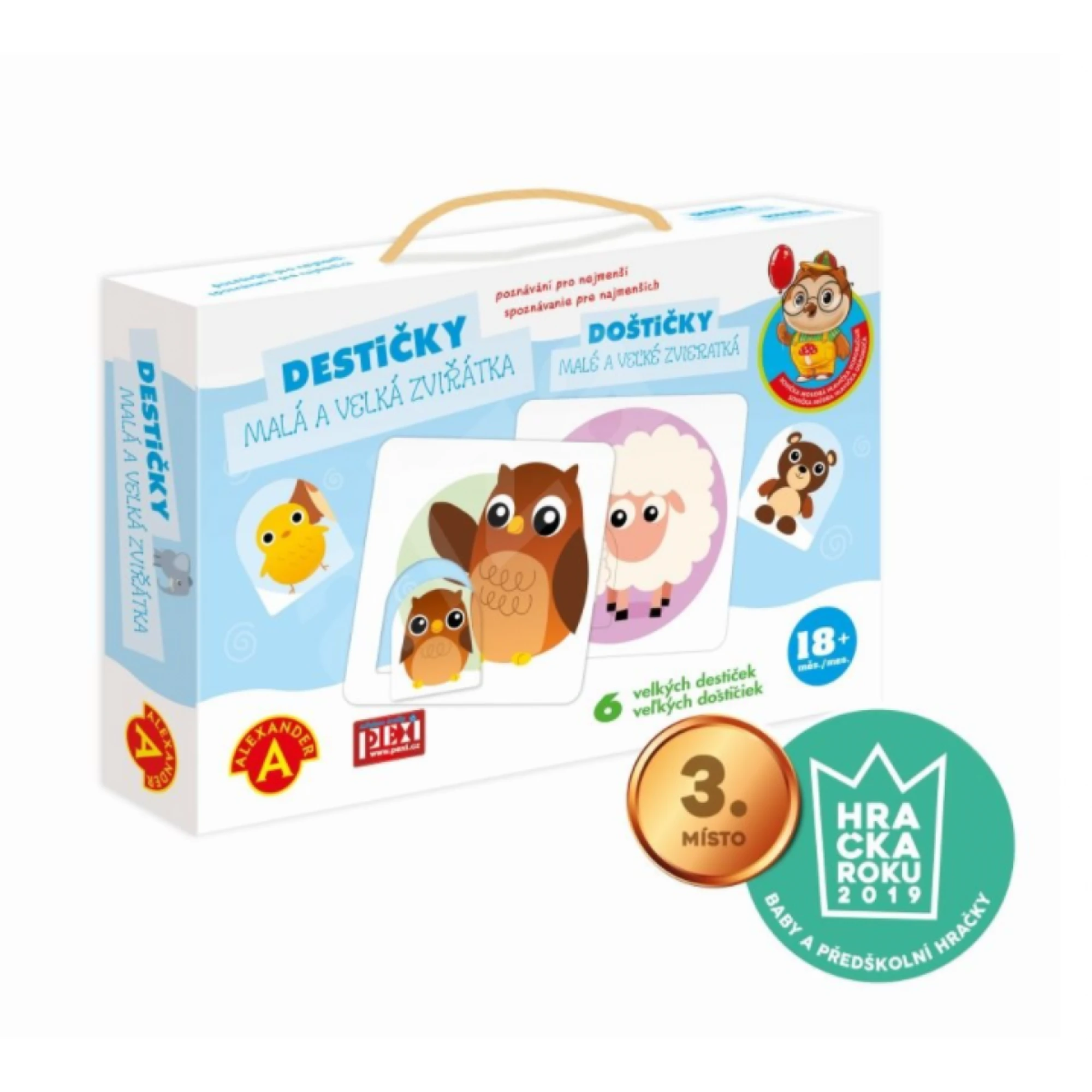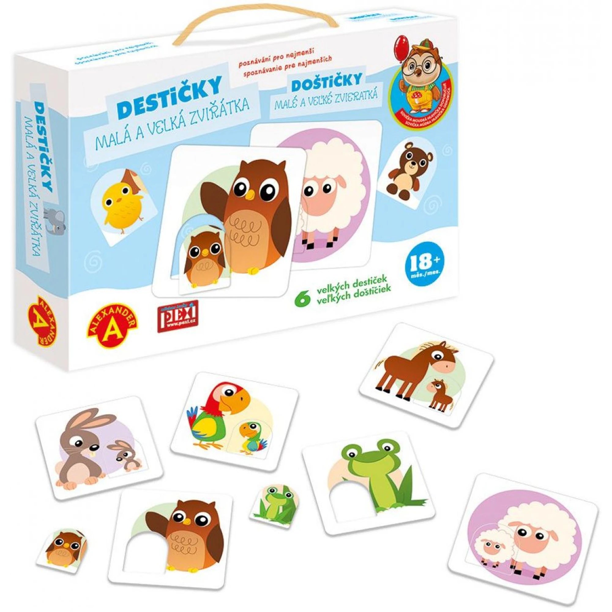 Destičky s podtitulem Malá a velká zvířátka jsou naučná hra pro děti od jednoho a půl roku – malí badatelé tu dávají zvířatům správné parťáky.
