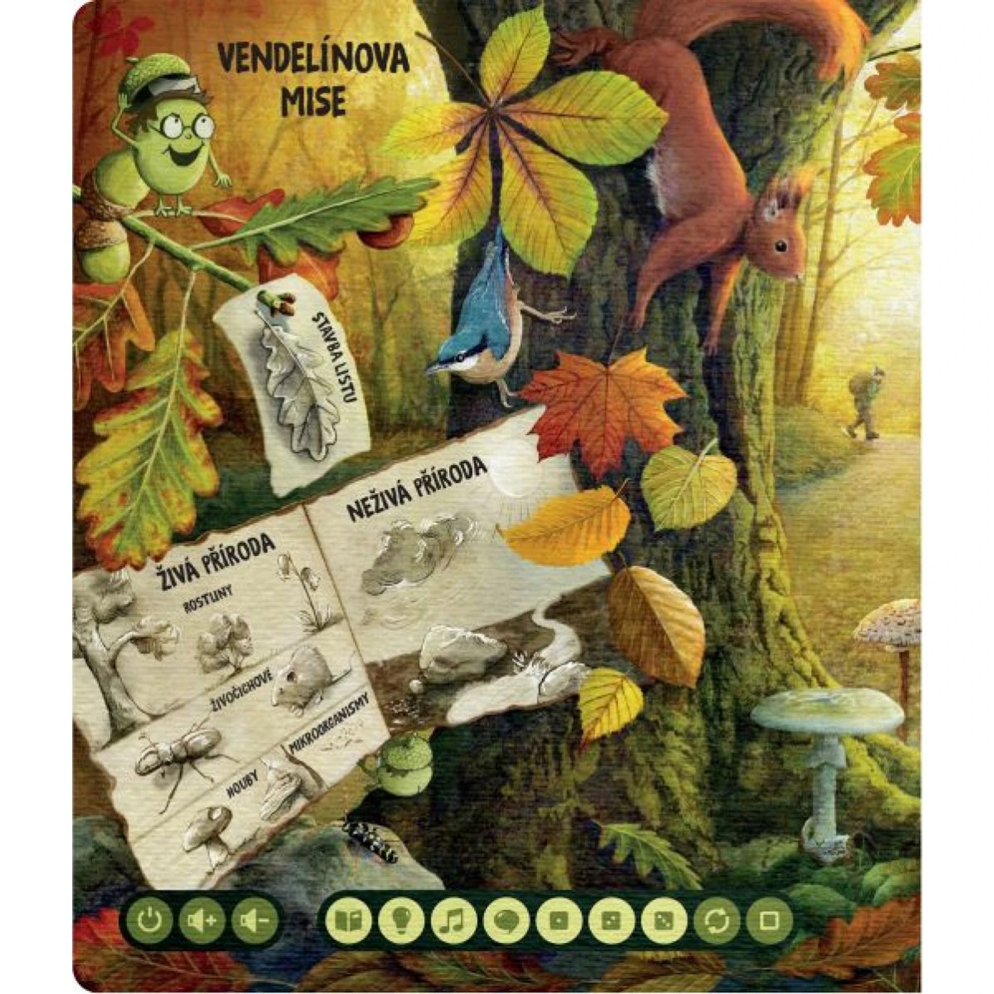 Malý žalud Vendelín bere děti na výpravu přírodními biotopy. Přiblíží jejich základní složky, vysvětlí pojmy živá a neživá příroda, zákonitosti potravinového řetězce i druhový vývoj zvířat. Až bude hlava plná objevů, čekají zábavné kvízy v různých kategoriích.