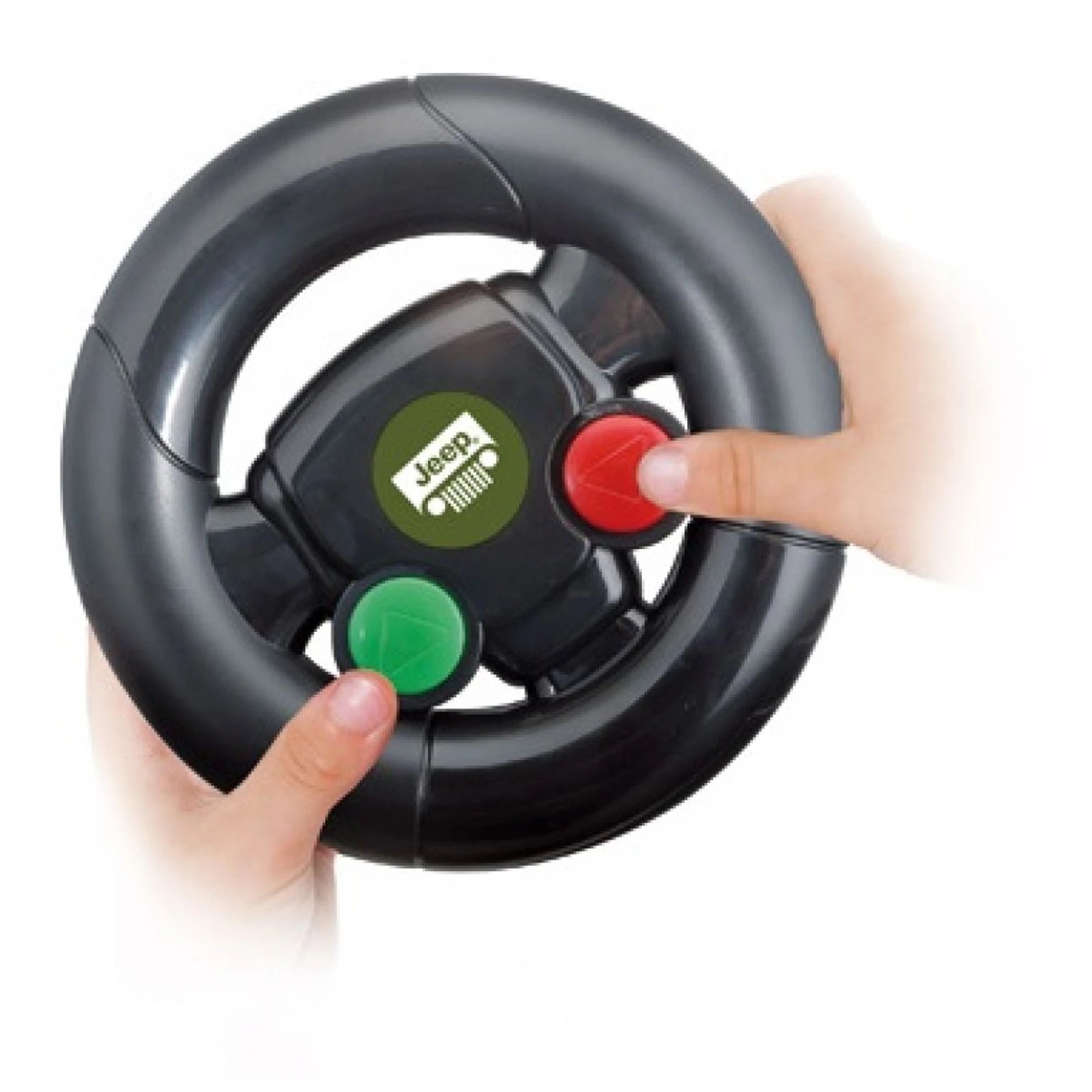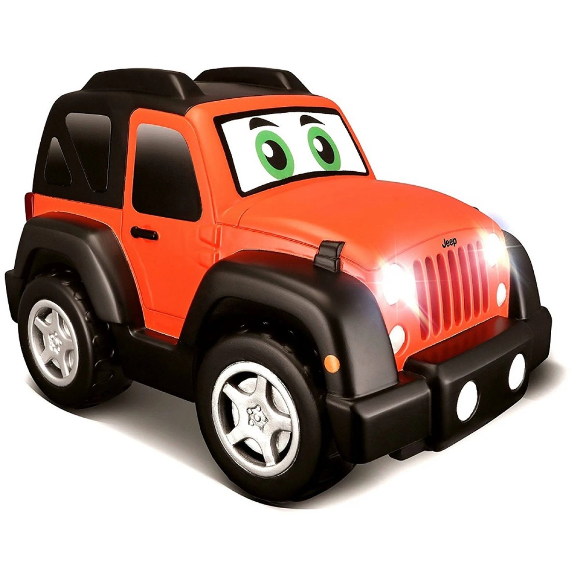 Super oranžový jeep pro nejmenší řidiče – dá se ovládat na dálku pohodlně přes volant a velká tlačítka. Po aktivaci se rozsvítí, vydává zvuky, vyrazí vpřed i zacouvá a poslušně zatáčí.