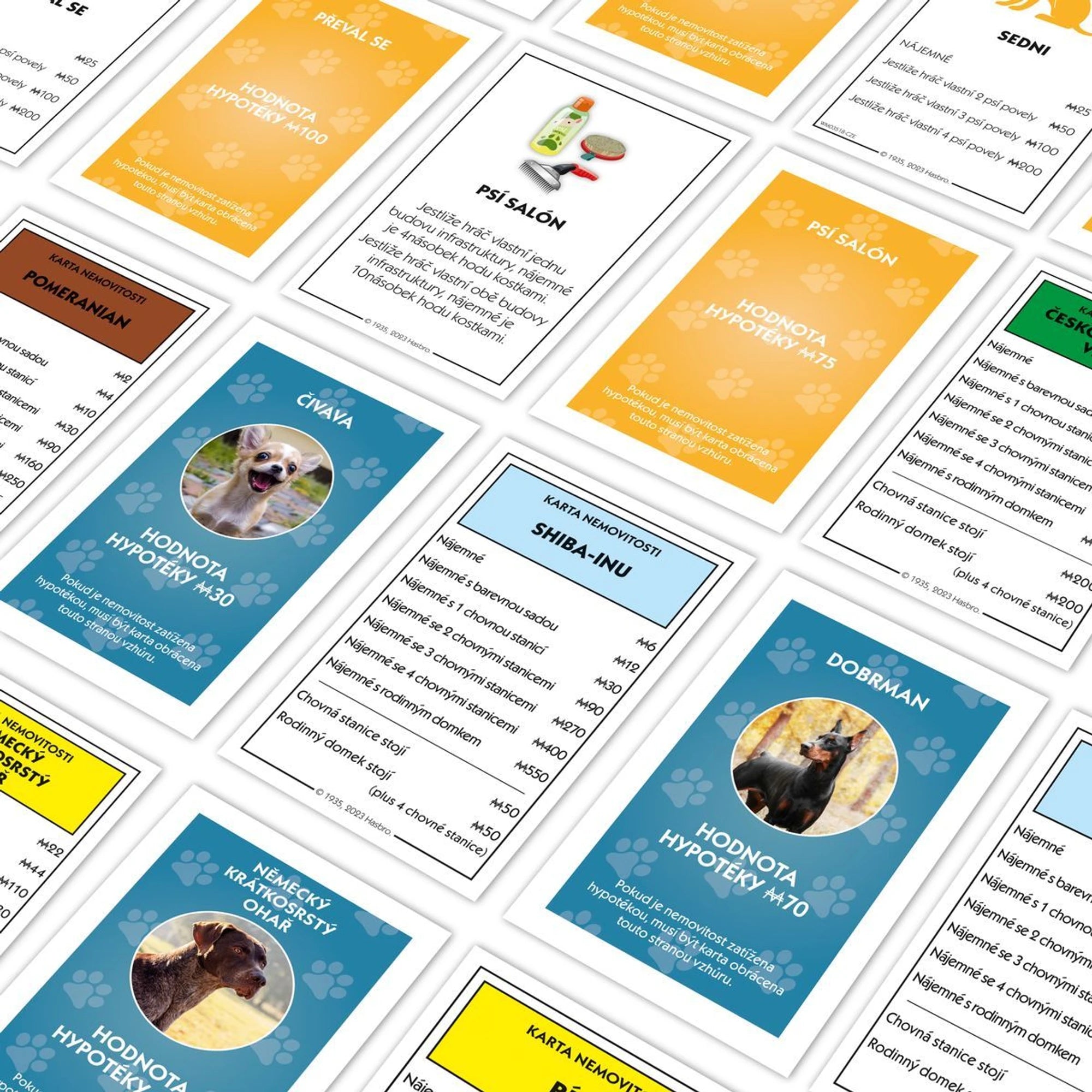 Tentokrát to celé běhá ve světě psů. Hra nabízí 22 nejoblíbenějších plemen. Hráči si vybírají štěňátka svých nejoblíbenějších plemen. Pak rozjedou výnosný byznys na herním poli a ukážou, jak umí prosperovat s Monopoly.
