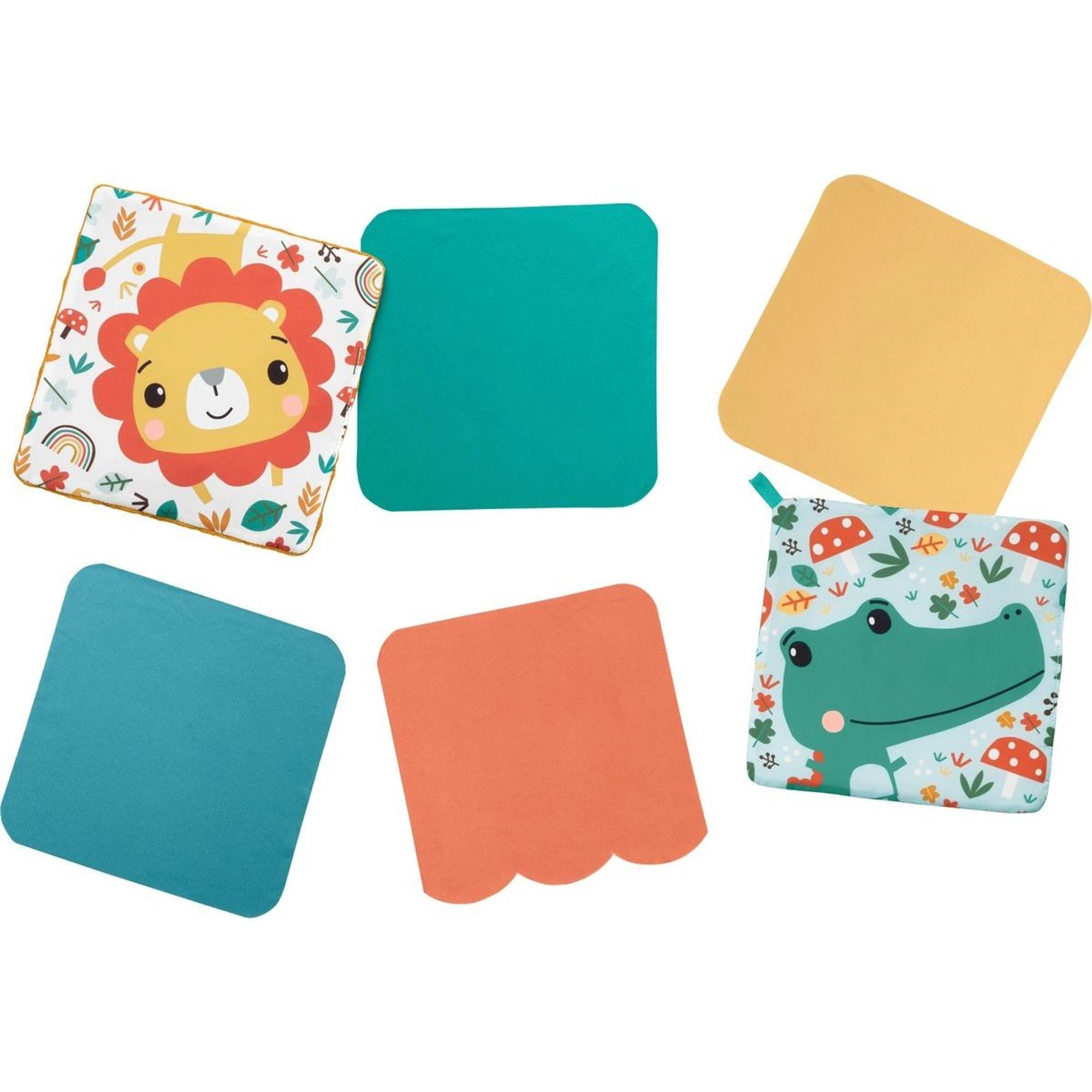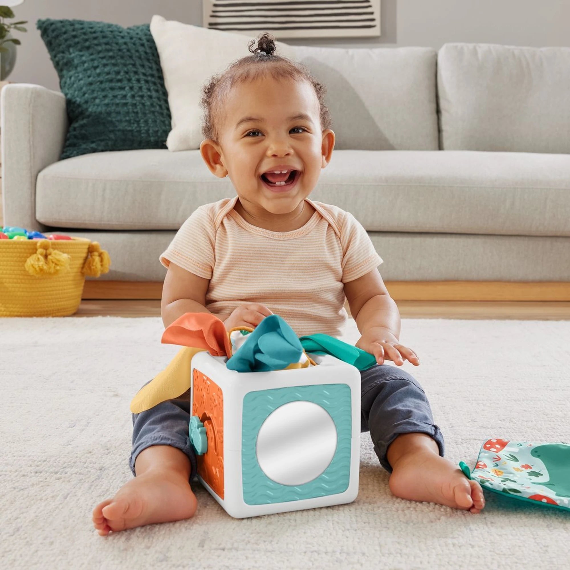 Holčičky a kluci se při hraní nenápadně seznamují s barvami a texturami. Na stranách kostky je čekají rozličné struktury a další šikovné aktivity. Samotná kostka a její okraje jsou tvarované tak, aby skvěle padly do malých dětských ručiček.