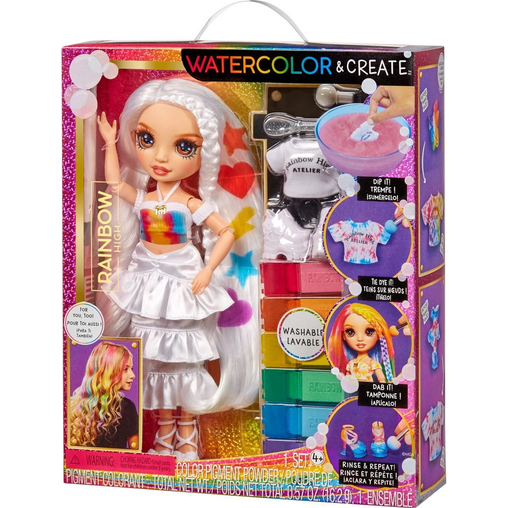 Panenky WaterColor dorazí s bílými vlasy a oblečením od hlavy až k patě. Po vybarvení si s panenkou lze hrát, vystavit ji a kdykoli změnit barvy vlasů i outfitu – stačí opláchnout a vybarvit znovu, klidně úplně jinak. Já Fantarius na tom miluju nekonečné proměny.