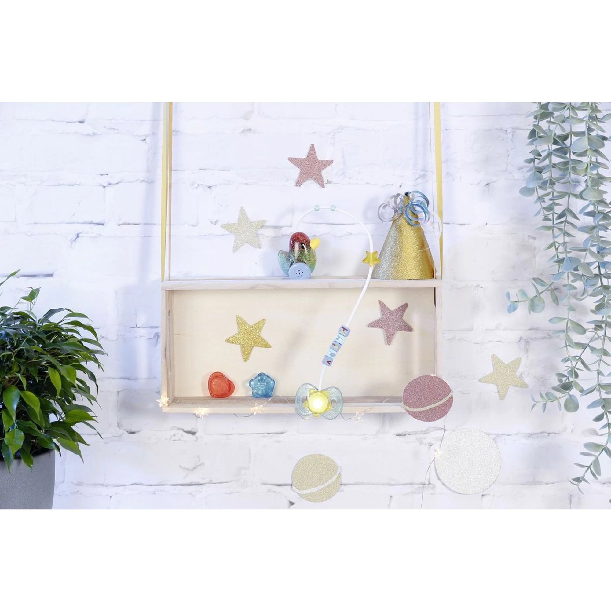Interaktivní dudlík z narozeninové edice k 30. výročí panenky – malý kousek magie, který reaguje hned, jakmile se ocitne v pusince. A když se v ústech panenky jemně pootočí, zavřou se jí oči jako po večerní pohádce.