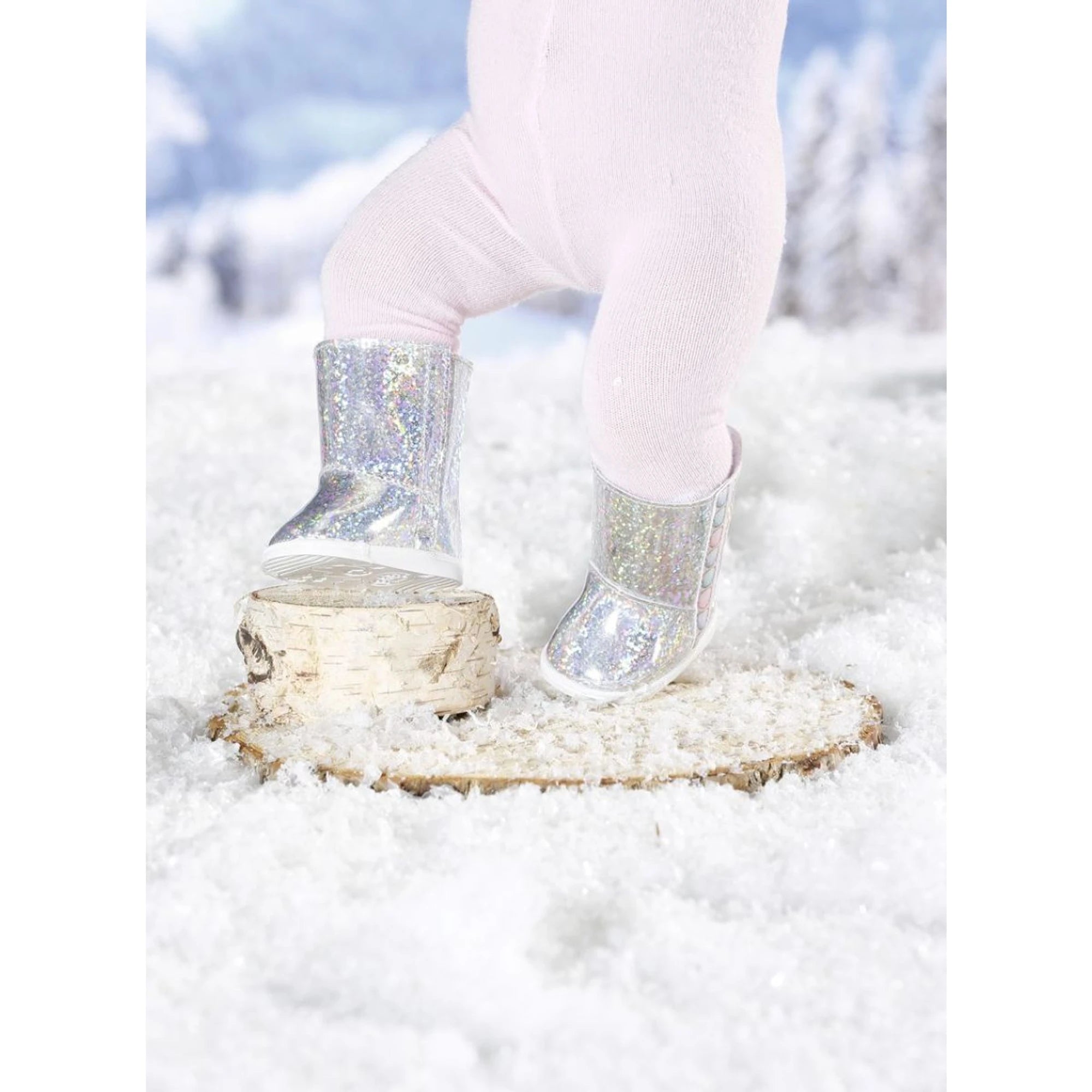 Vysoké zimní boty s holografickým efektem promění každou zimní misi v třpytivou show a padnou panence Baby Born 43 cm.