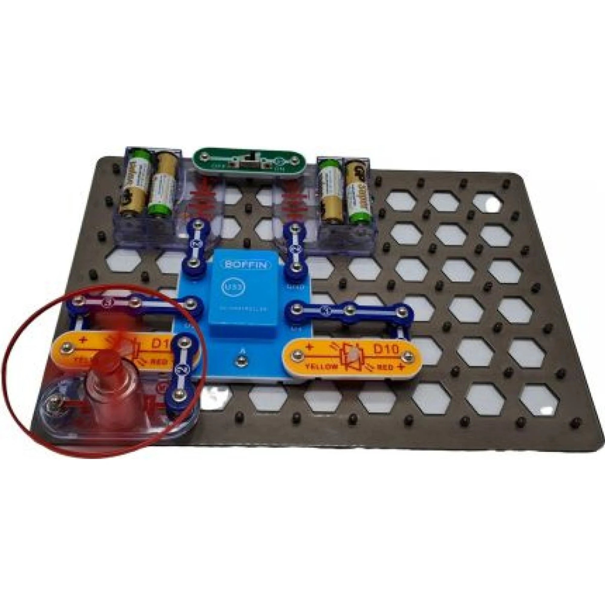 Elektronická stavebnice Boffin IV Coding bere děti do zákulisí fyziky a elektroniky tak zábavně, že je to vtáhne rychleji než magnet šroubek. V krabici je spousta součástek, ze kterých vznikne hned několik parádních projektů.