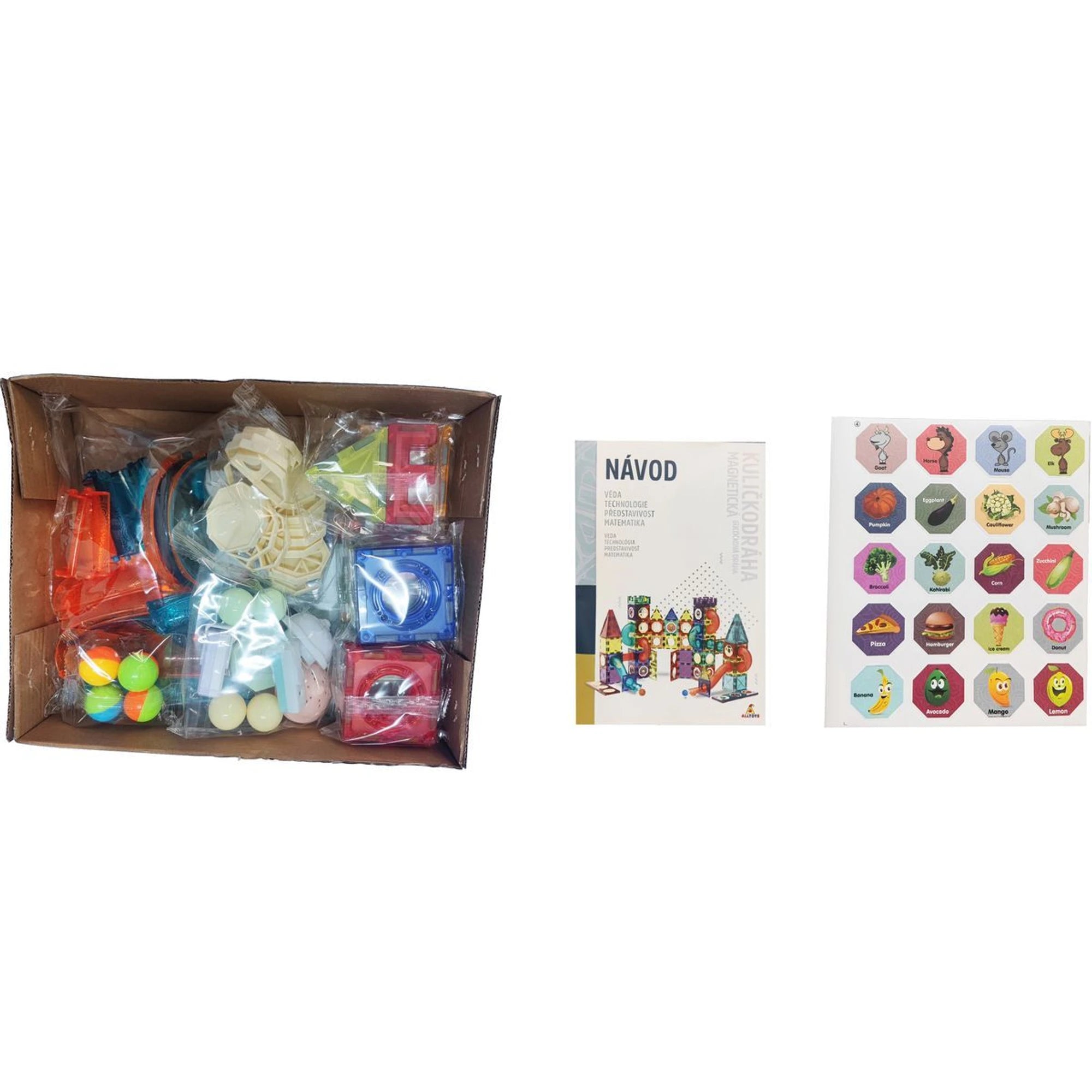 Sada různě tvarovaných dílků, ze kterých si děti postaví kuličkovou dráhu rychleji, než se řekne „koule dolů!“.