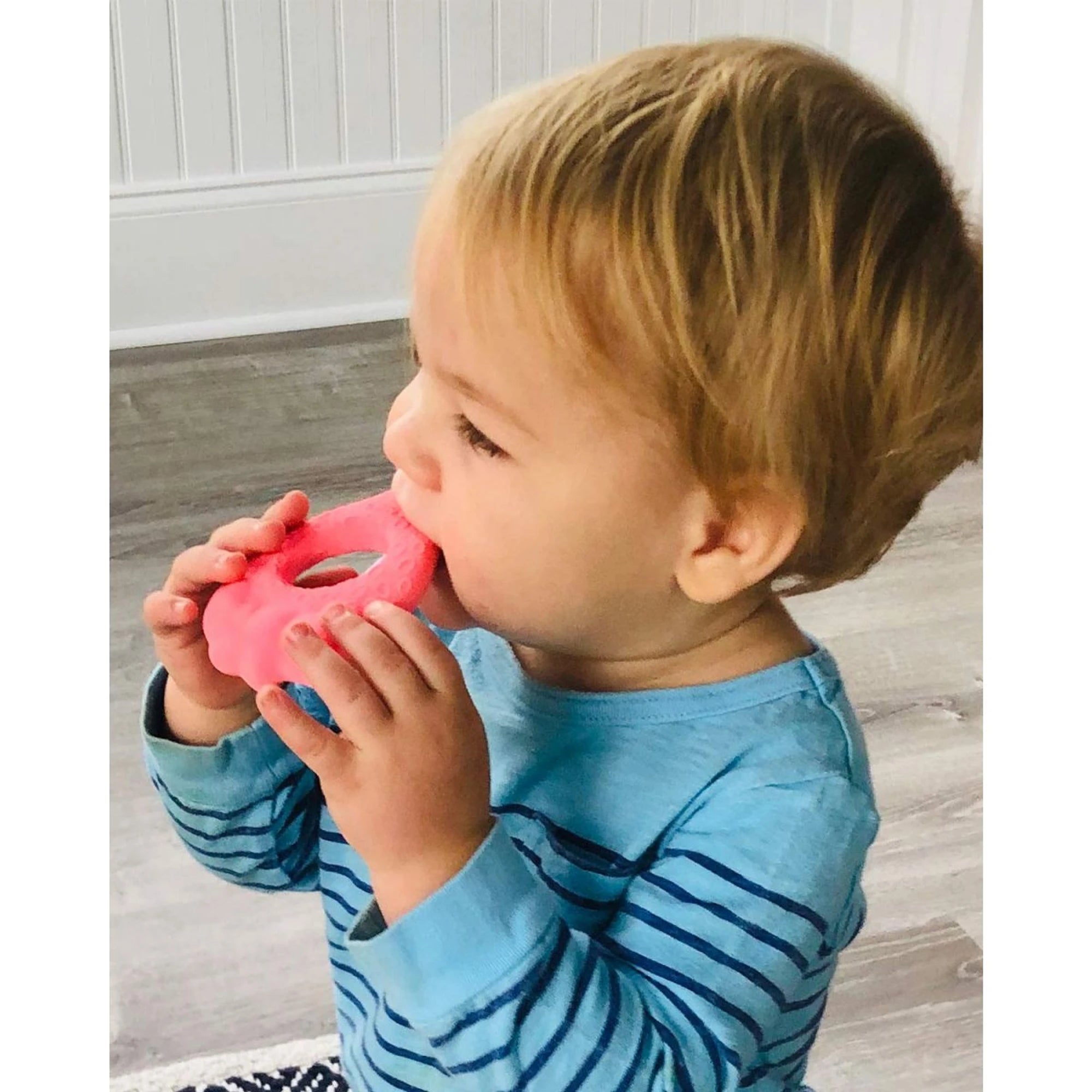 Kousátko z přírodní gumy uleví od bolesti nateklých dásní při prořezávání prvních zoubků – malý parťák pro velkou úlevu.