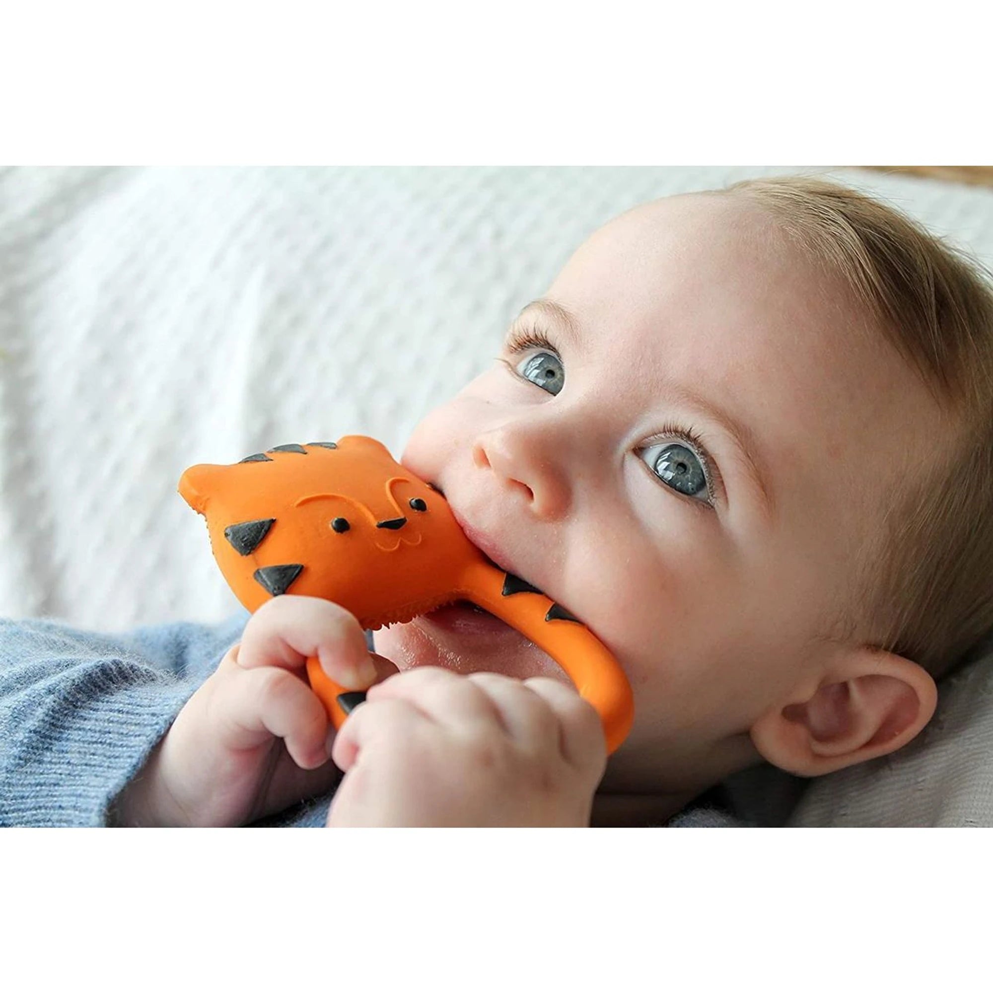 Kousátko z přírodní gumy ulevuje od bolesti nateklých dásní při prořezávání prvních zoubků – když se první zoubky derou ven, tohle je hrdina do žužlání.