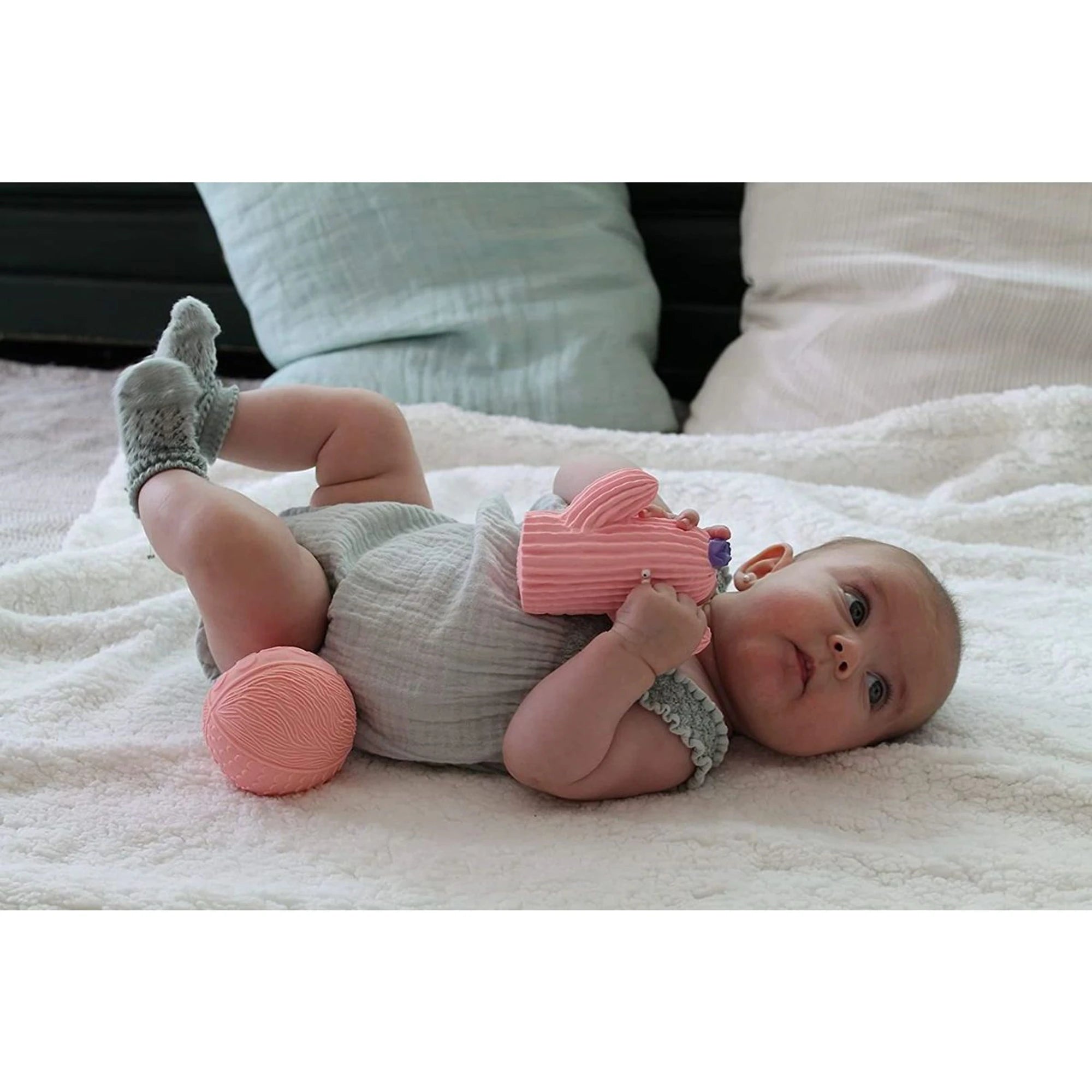 Jeho povrch je různých struktur; hodí se na hru i jemnou masáž ručiček a nožiček. Malé výstupky na míčcích nejen masírují, ale i stimulují rozvoj smyslů a pomáhají s rovnováhou.