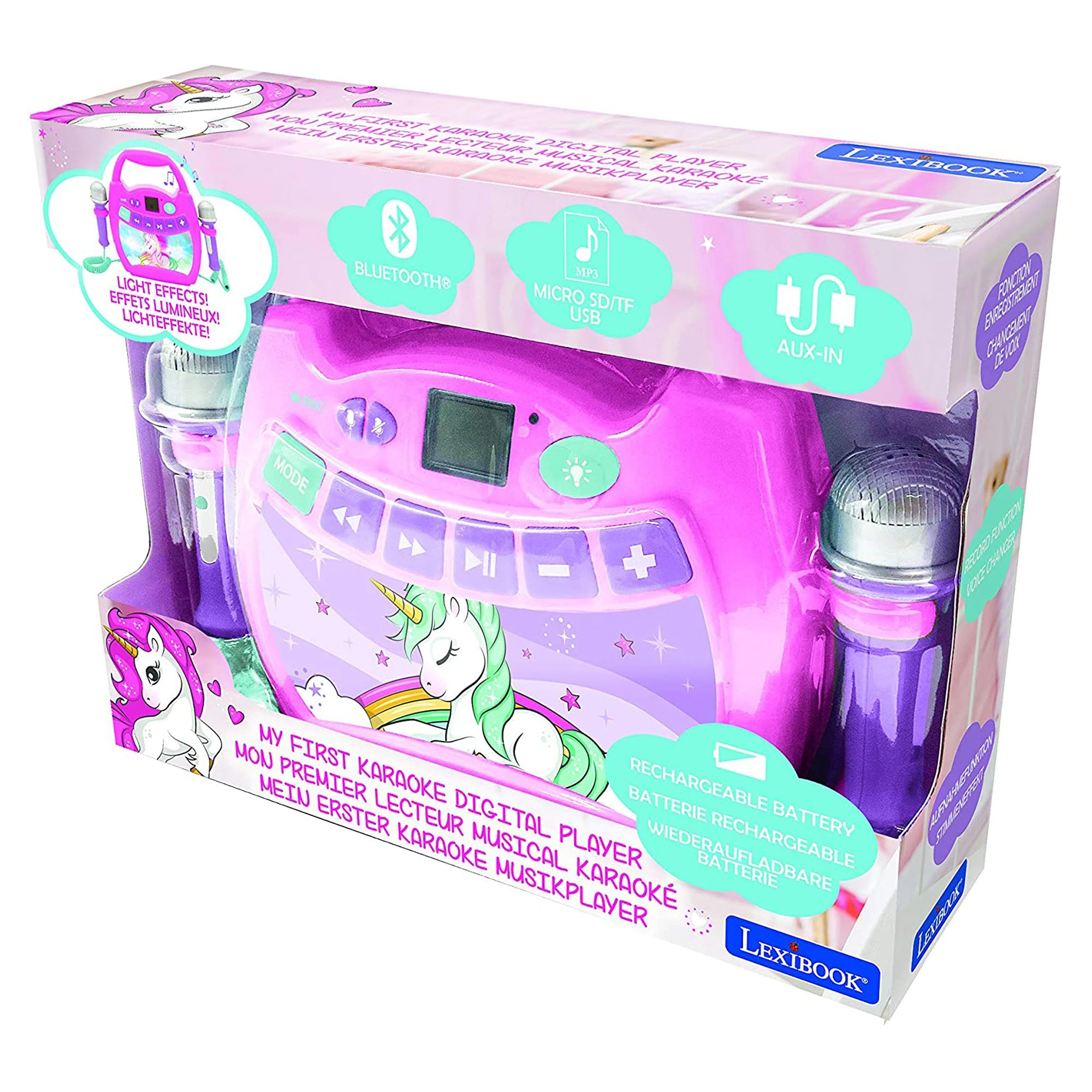 Lexibook Svítící digitální karaoke přehrávač se 2 mikrofony - Jednorožec